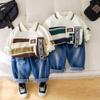 【Estilo】Roupa Infantil Scirocco Primavera e Outono Novo Estilo Roupa Infantil Conjunto Infantil Bebê Um Ano Roupa Formal Conjunto de Cavalheiro Atacado