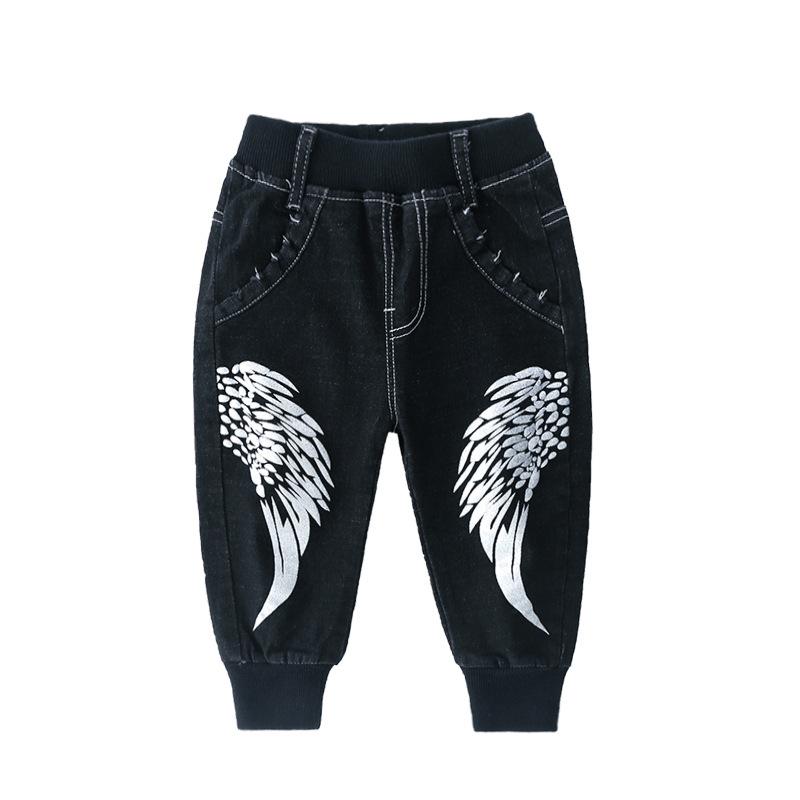 Compre Calças jeans infantis atacado calças coreanas infantis meninos calças asas estampadas calças de bebê geração cabelo no atacado no Joom.pro