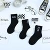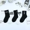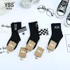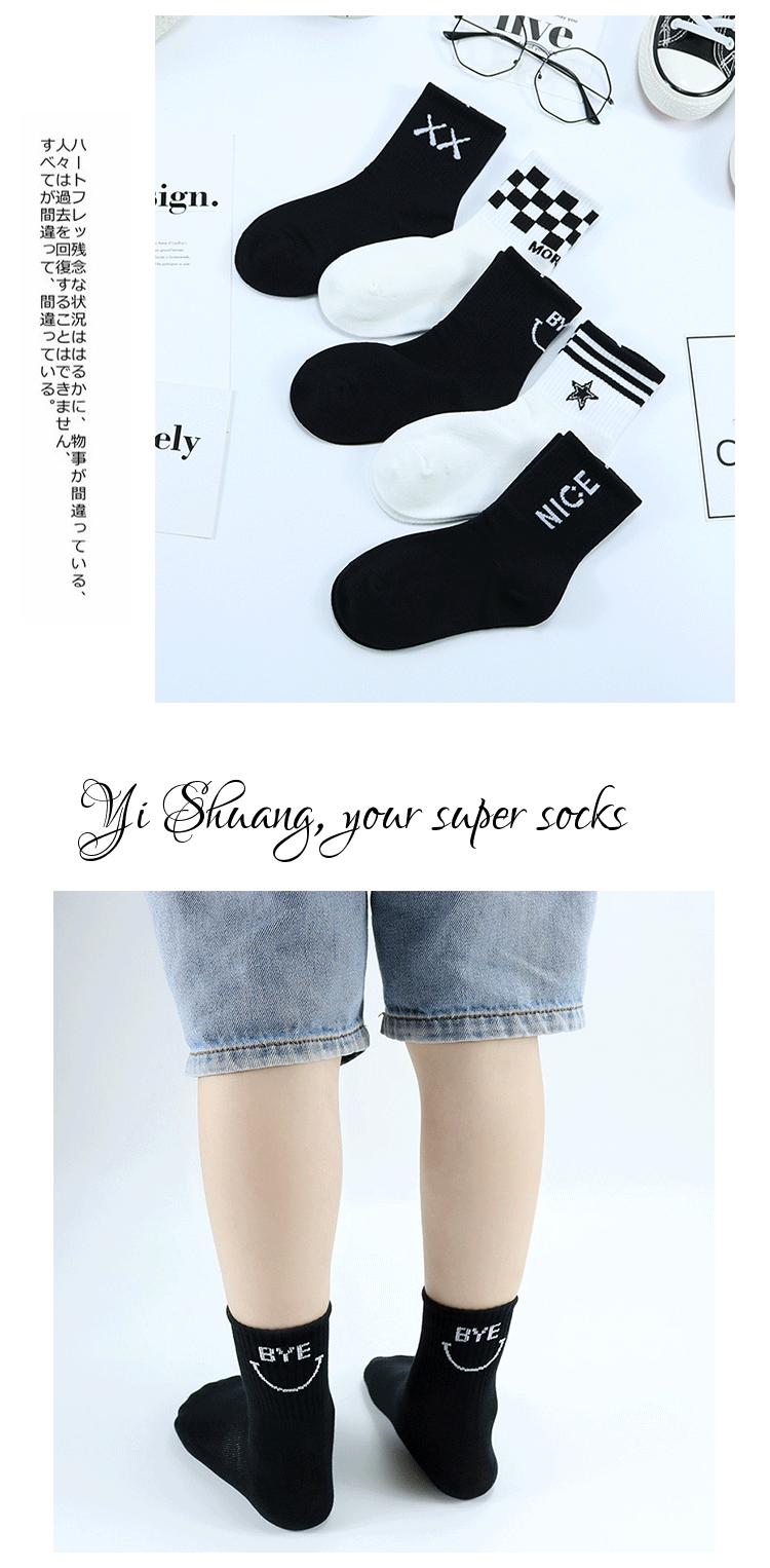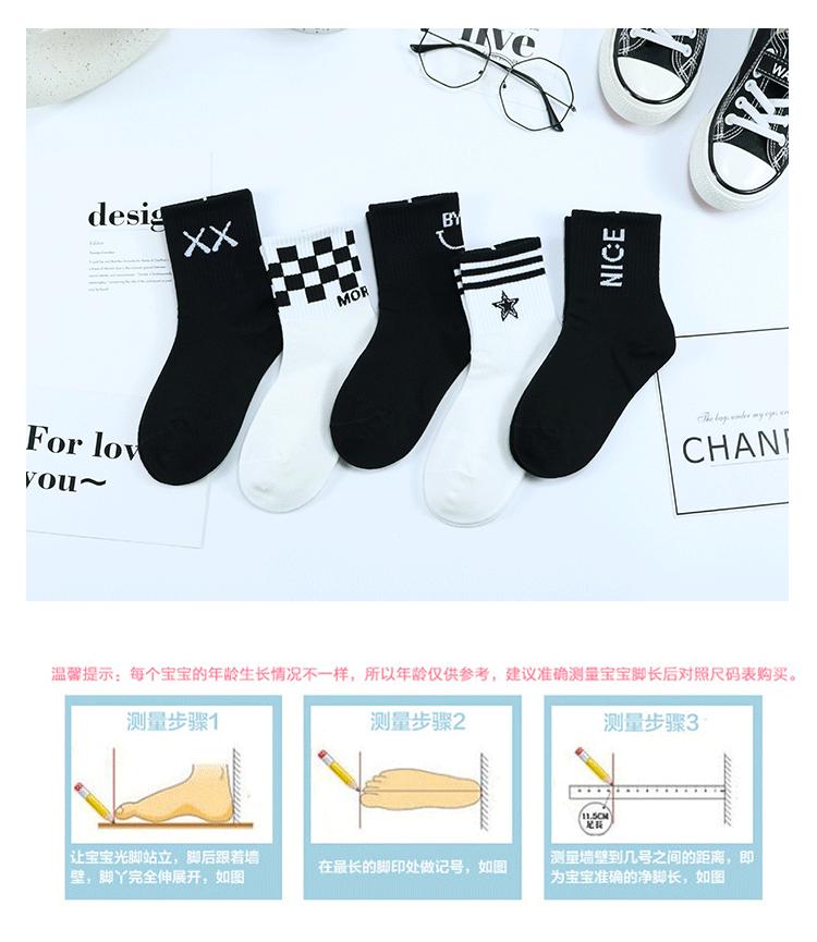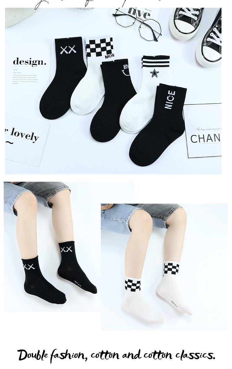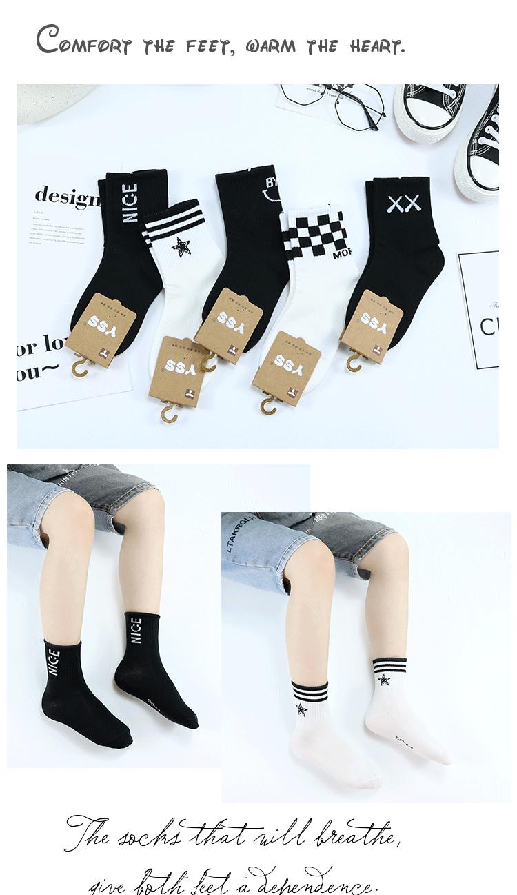Meias duplas infantis outono e inverno Nova marca de moda coreana meias de bezerro médio penteado algodão médio e grande meias infantis preto e branco meias esportivas