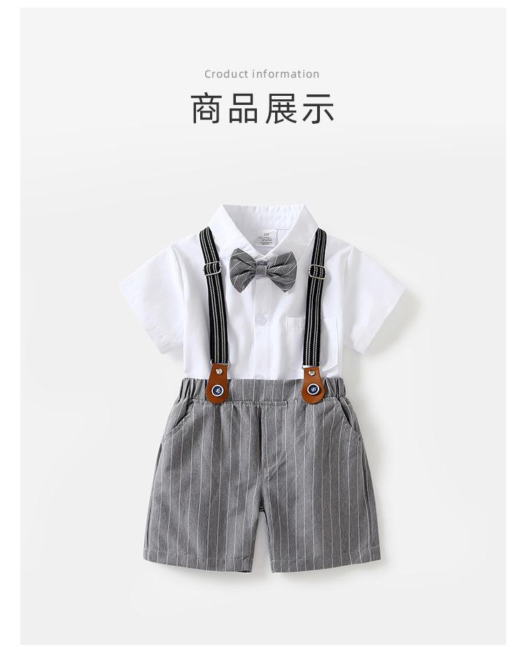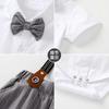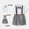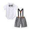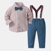 Terno Infantil Camisa Gravata Borboleta Cavalheiro Macacão Listrado Roupas Estilo Coreano Vestido de Um Ano Meninos Duas Peças Atacado