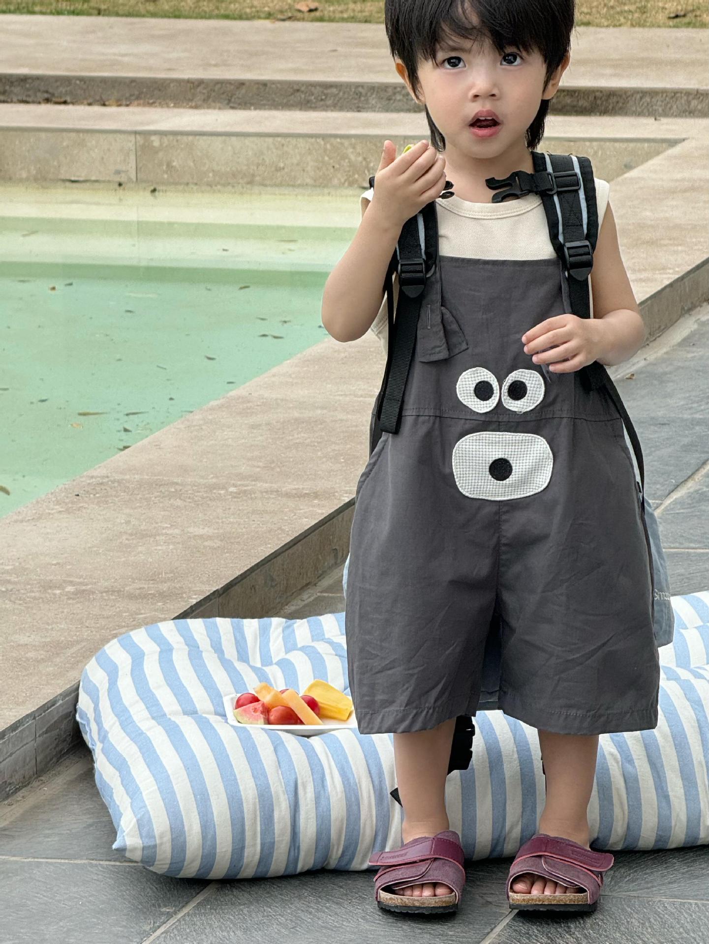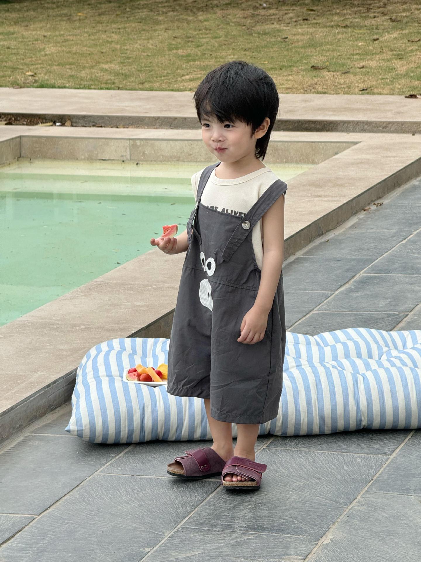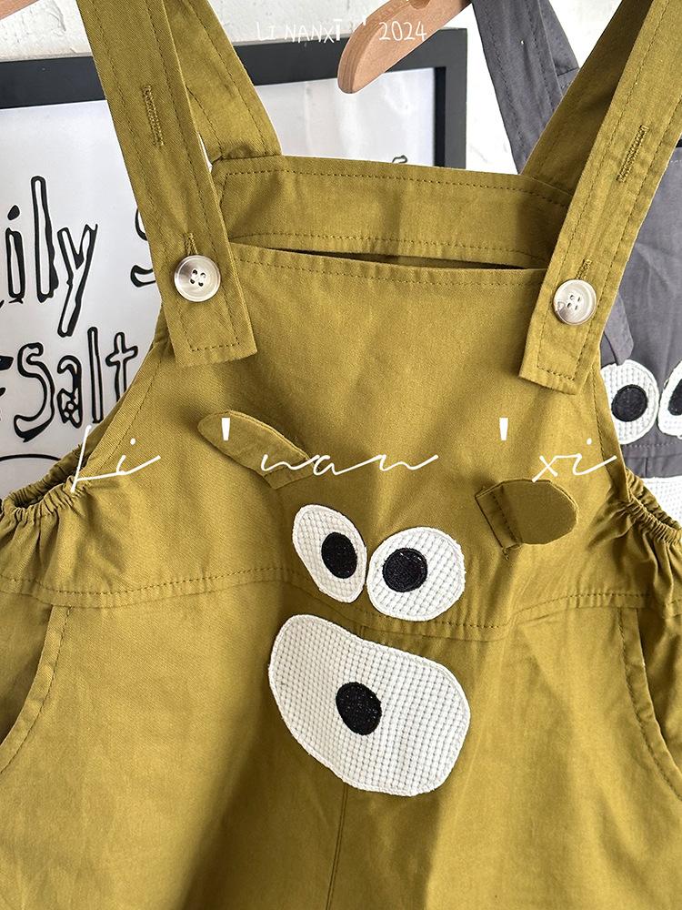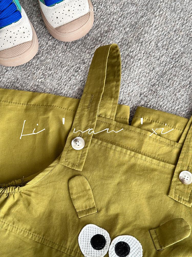 24 verão novas crianças suspensório calças meninos e meninas macacão bonito algodão casual slip-on forma côncava calças