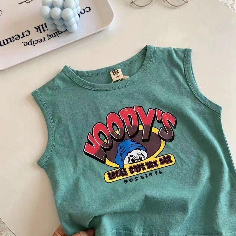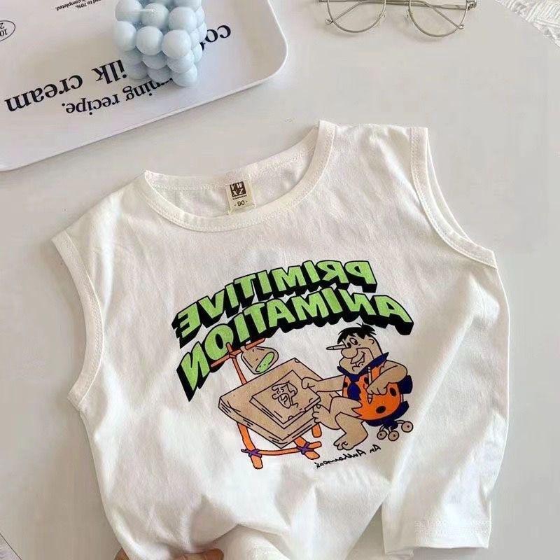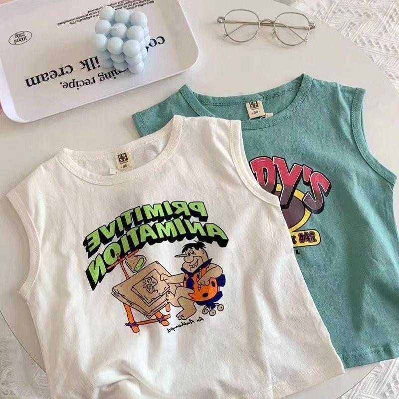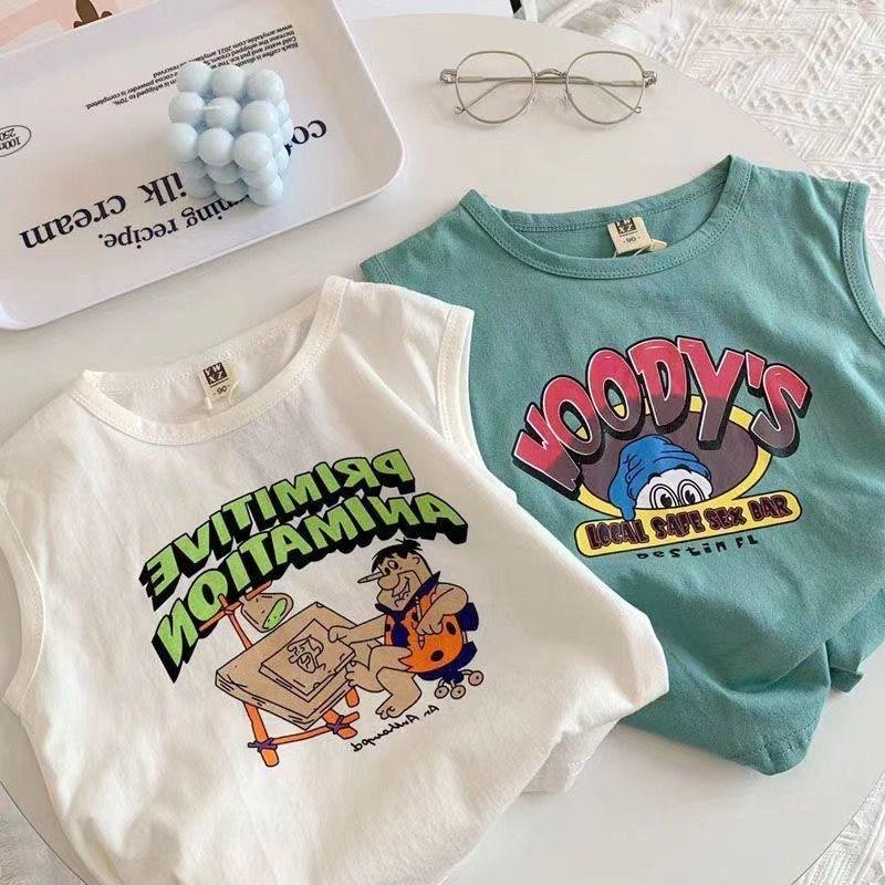 Algodão Colete Pequeno 2024 Crianças Verão Sem Mangas Cartoon Menino Pescoço Redondo Impresso Crianças Estilo Ocidental Exterior Wear Top