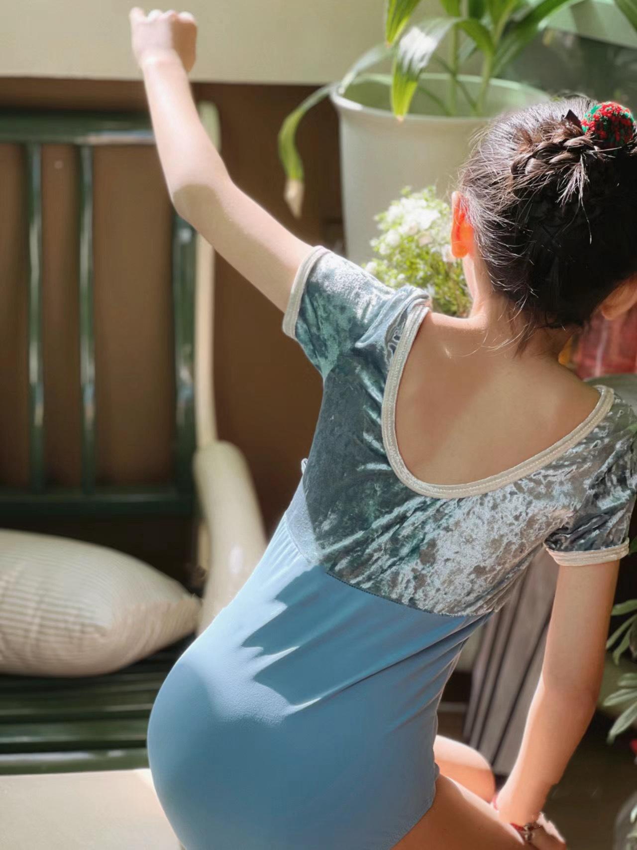 Dança Infantil Ginástica Ballet Roupas de Treinamento Corporal Meninas Verão Novo Veludo Manga Curta Profissional One-piece Exame Roupas