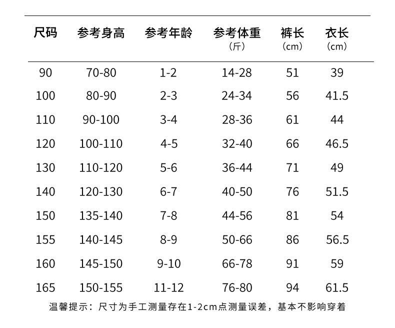 Children (3~8 years old, 100~140cm)
