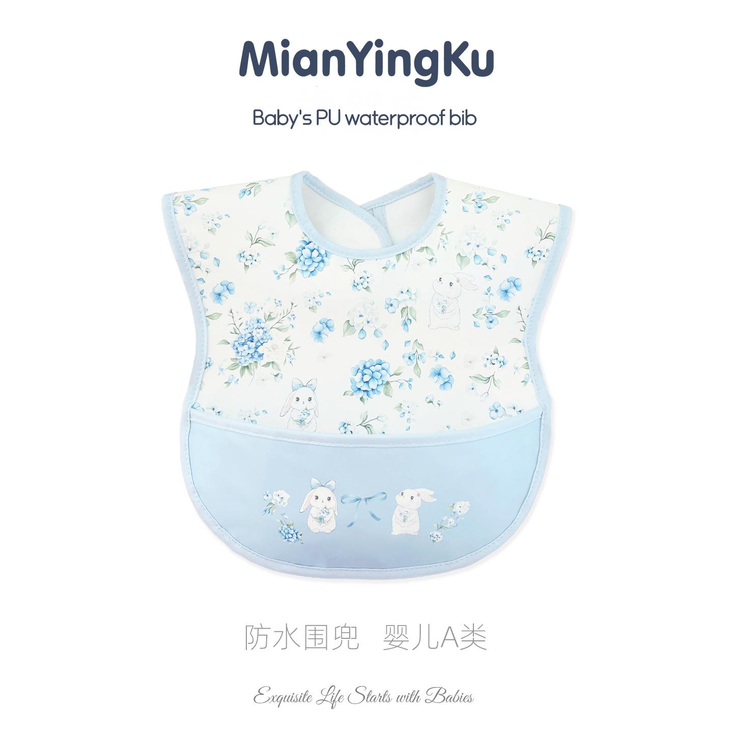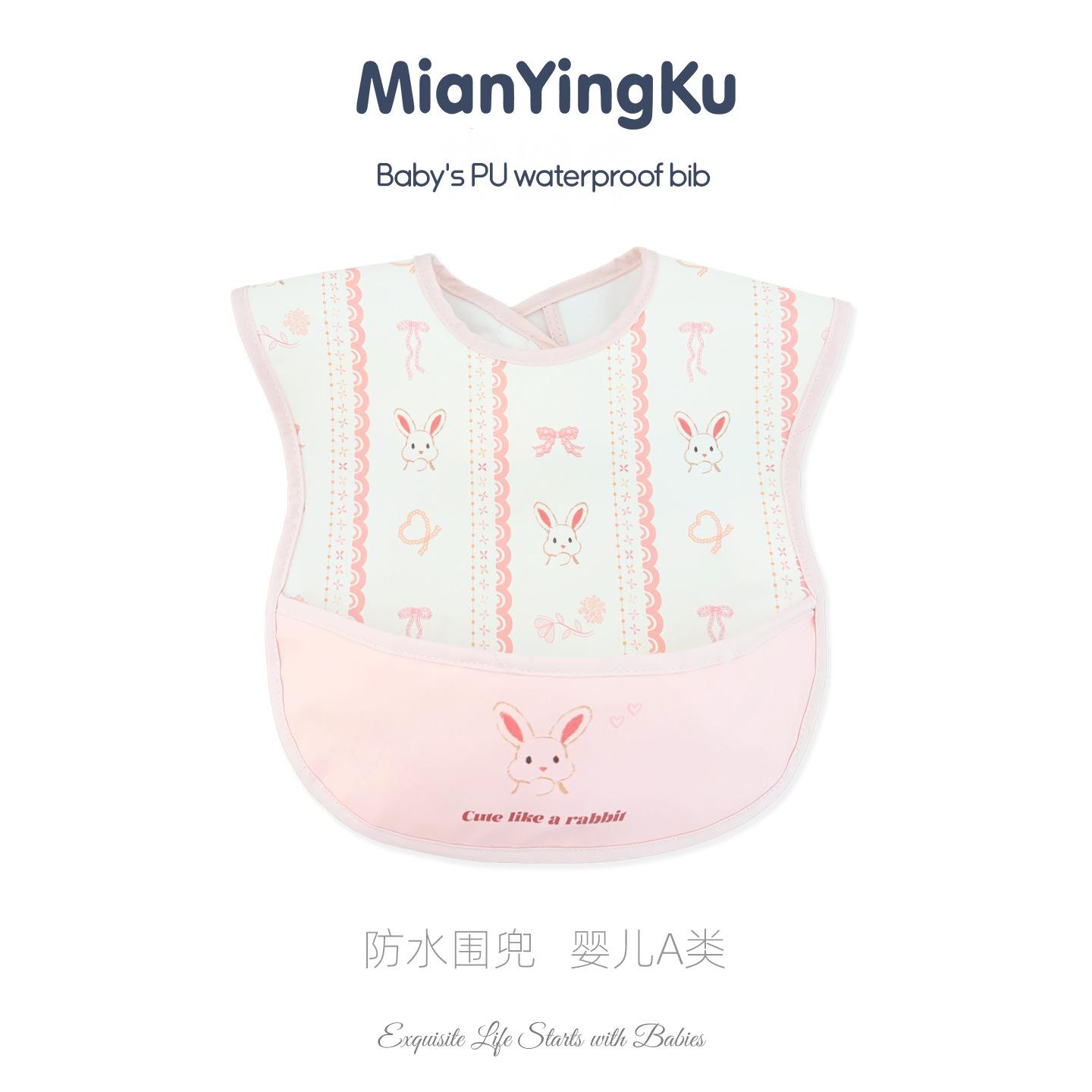 New pu three-dimensional bib pink cute rabbit, New pu three-dimensional bib hydrangea blue rabbit, New pu thre...