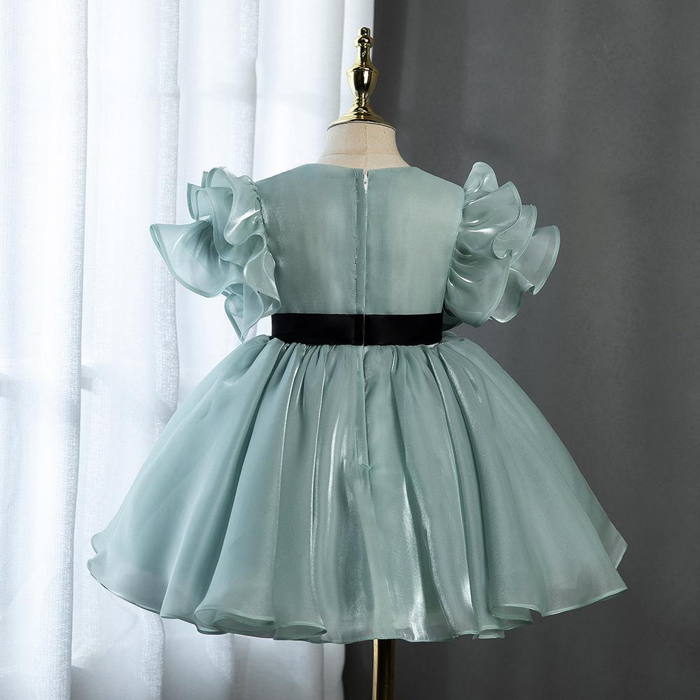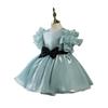Vestido elegante da menina princesa vestido das meninas fio puffy saia curta flor vestido da menina saia do bebê de um ano de idade