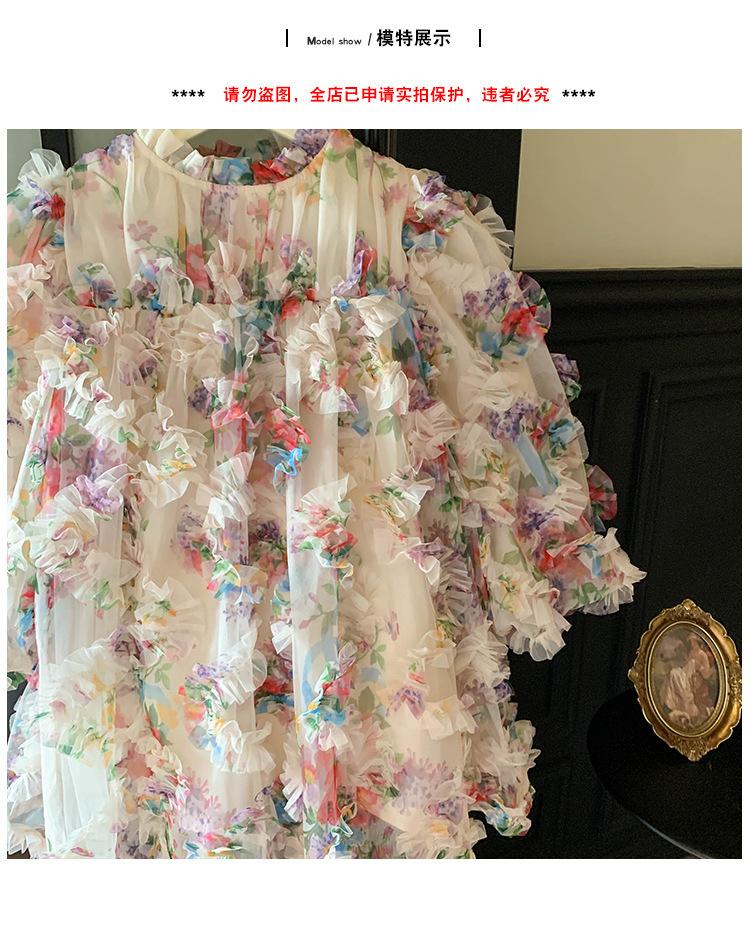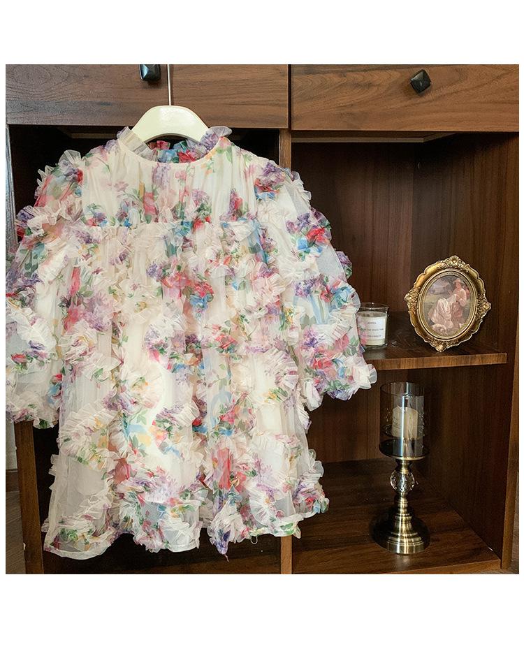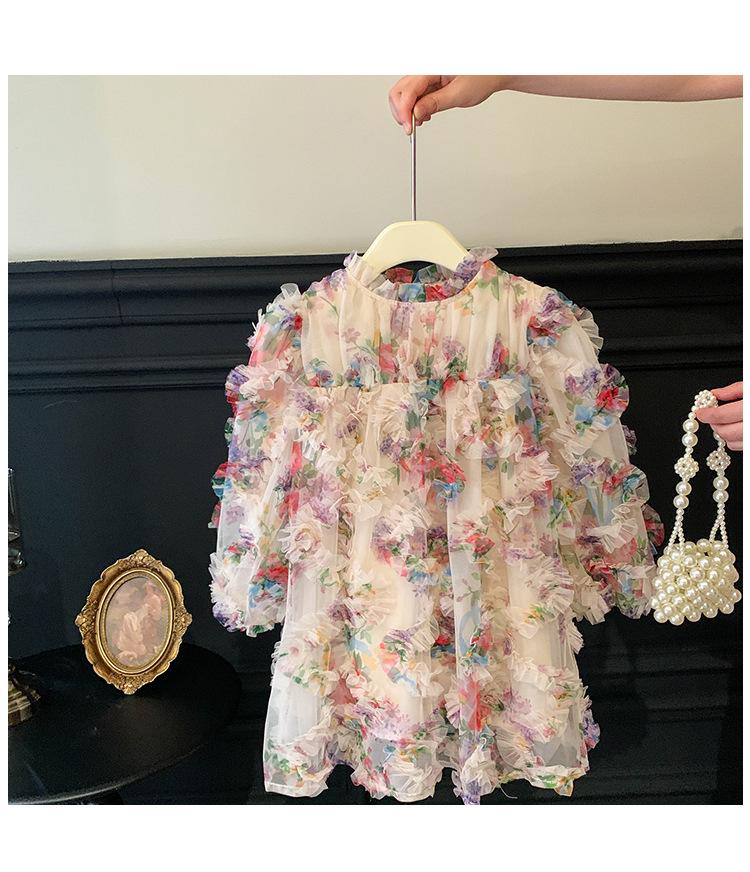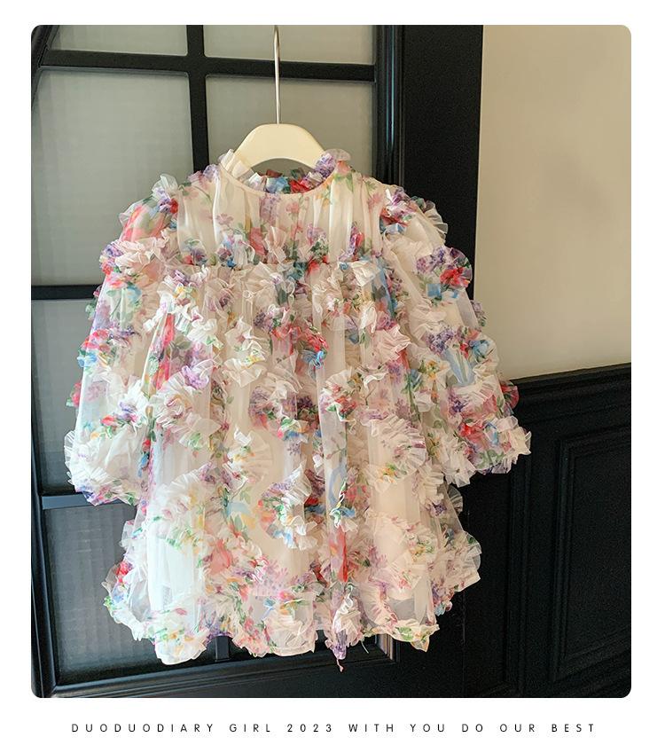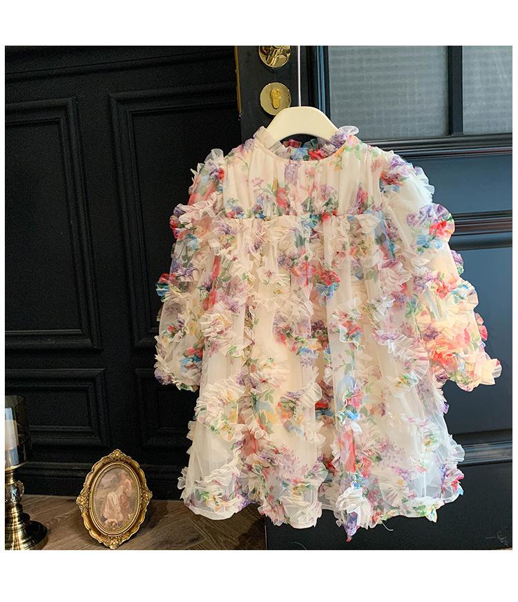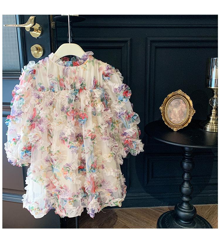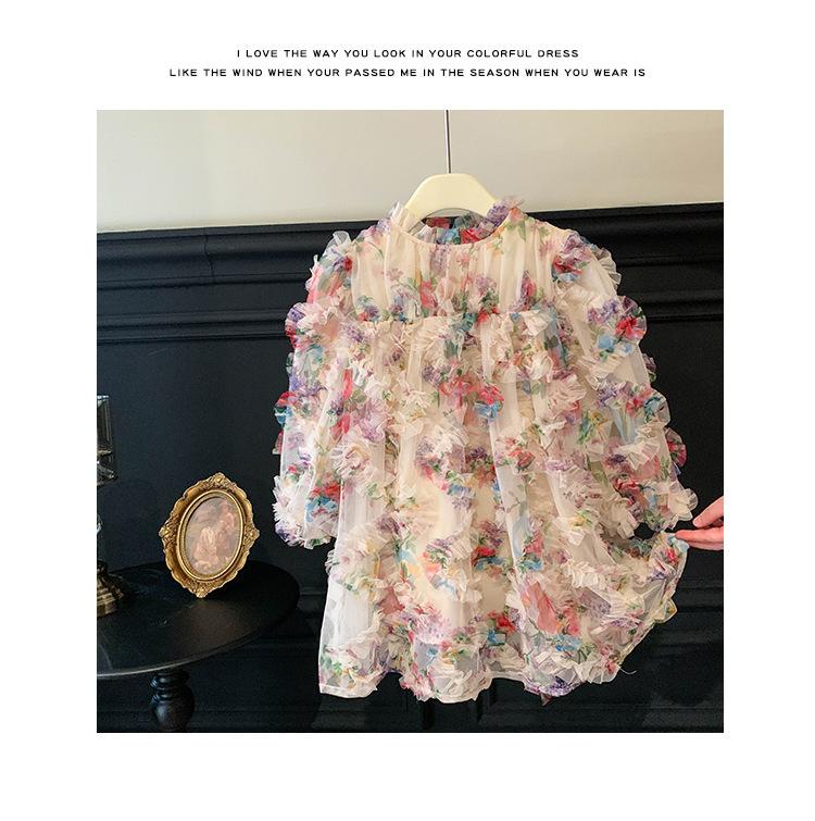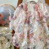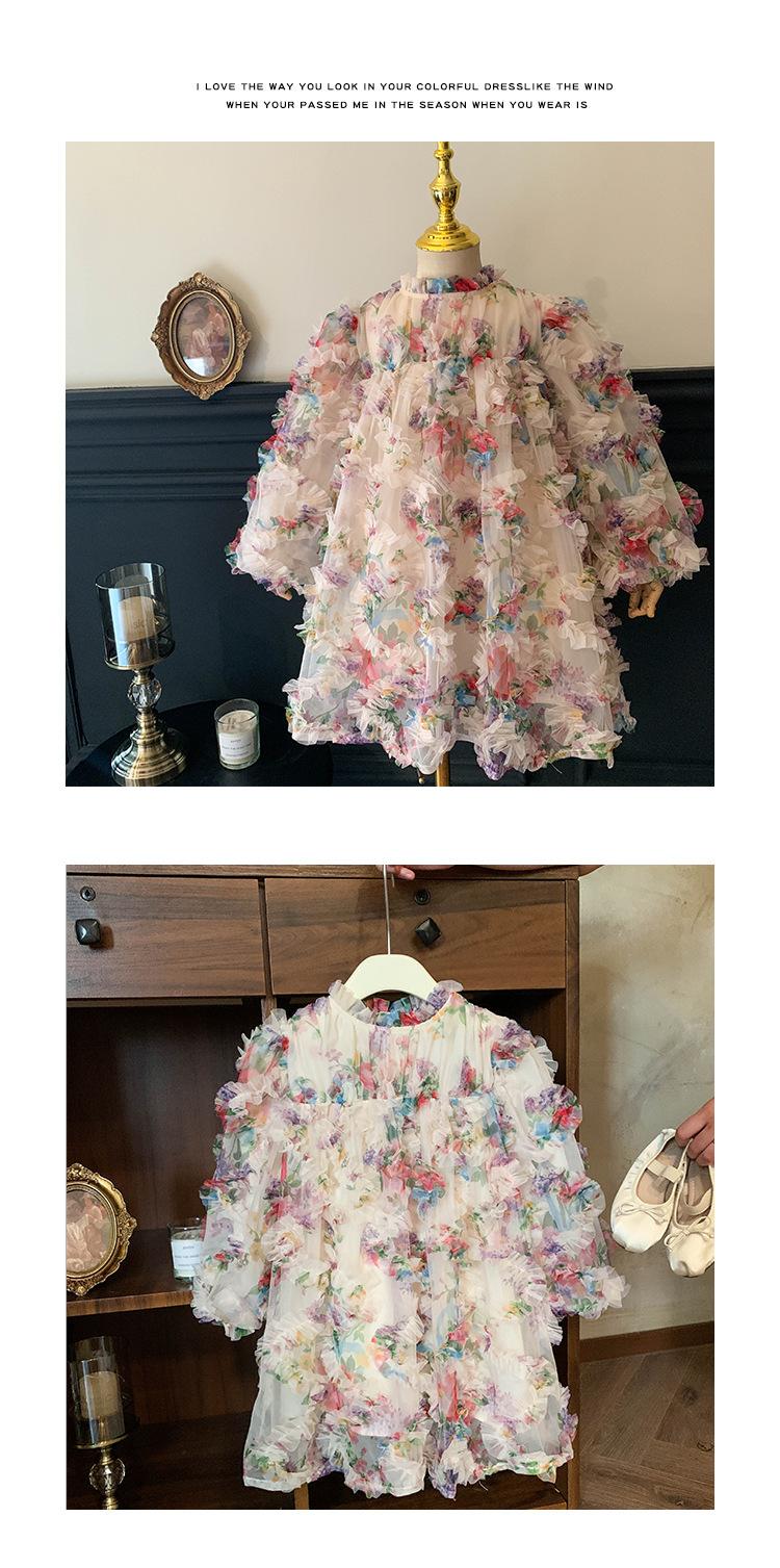 Vestido Infantil Primavera Novo 2025 Estilo Coreano Menina Ocidental Bebê Manga Bufante Flor Tridimensional Vestido de Princesa Fada