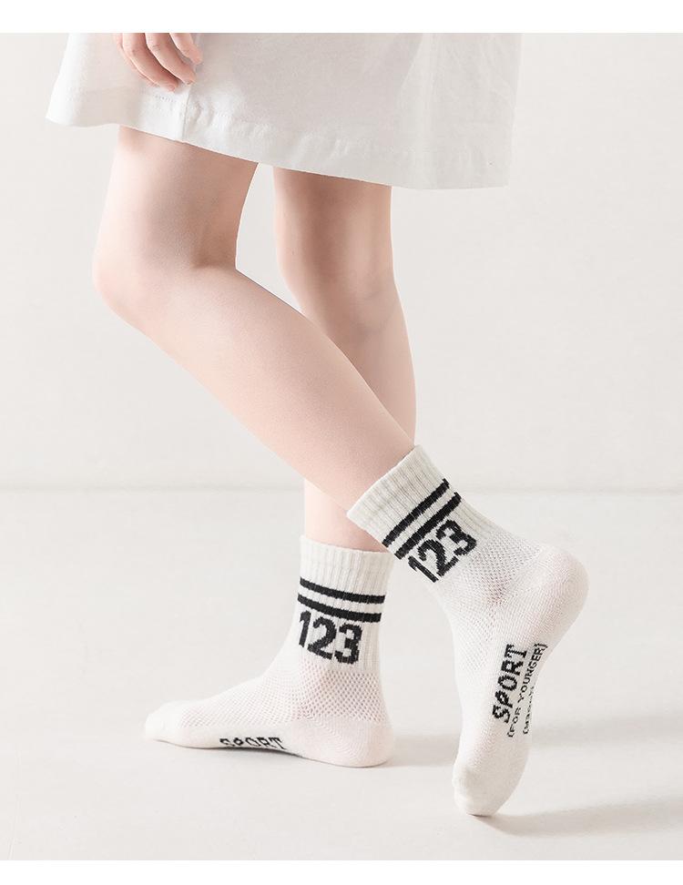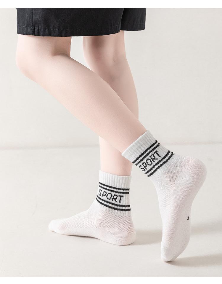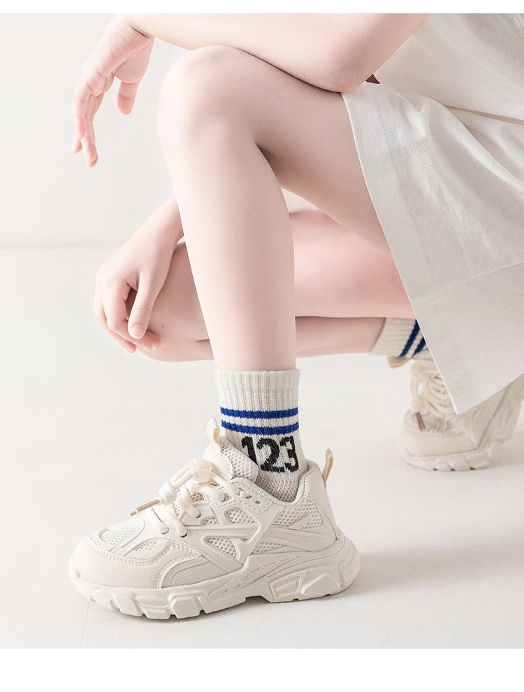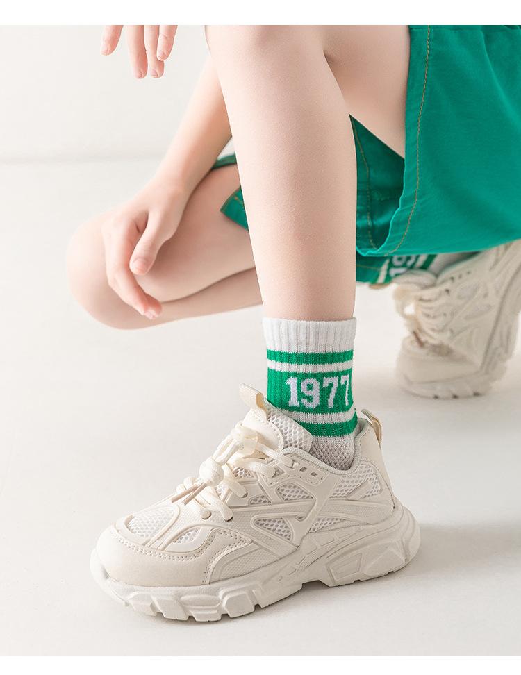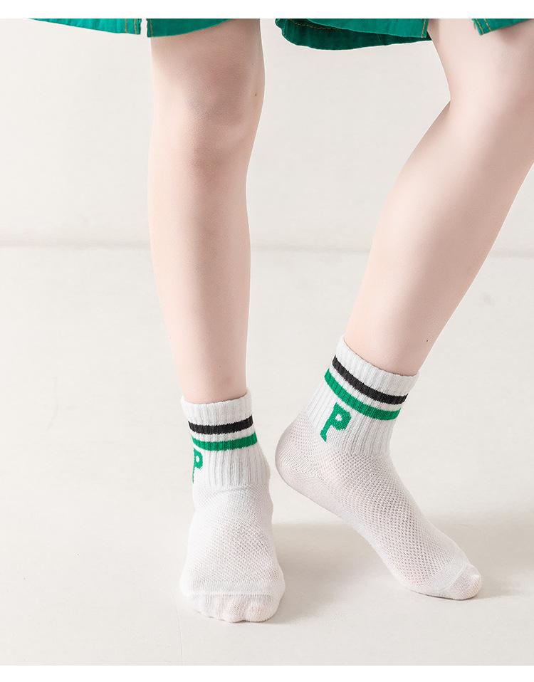 Meias de algodão novas para crianças primavera e verão, malha fina listrada, esportes digitais, 1-12 anos, meninos e meninas, meias de escola primária