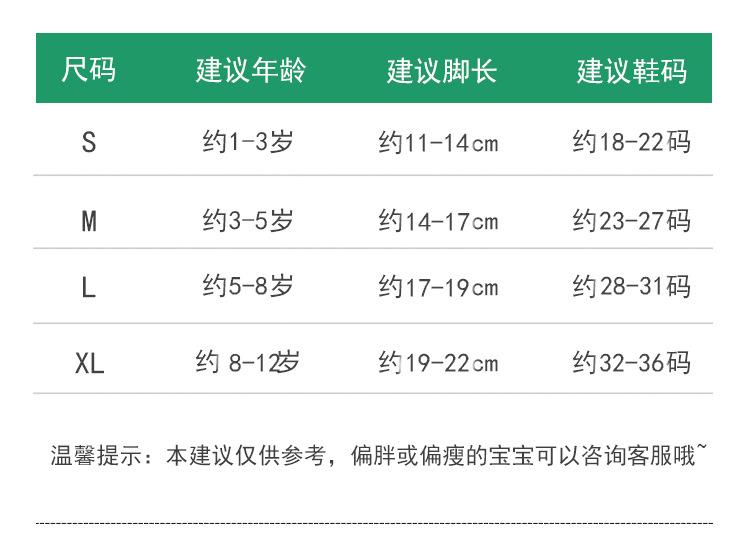 S(1-3 years), M(3-5 years old), L(5-8 years), XL(8-12 years)