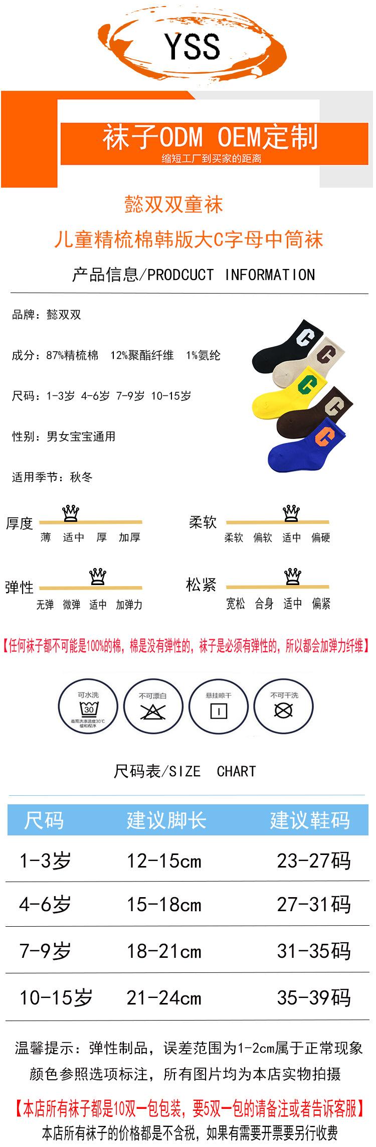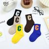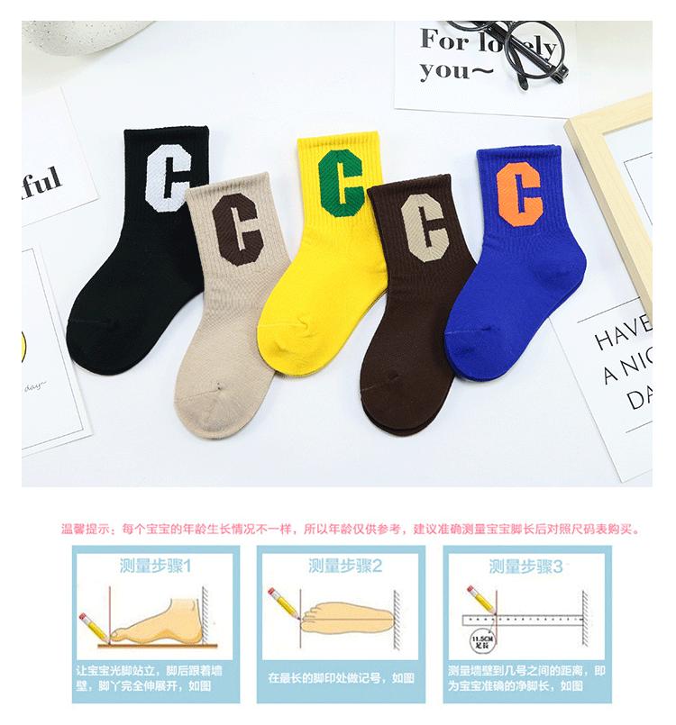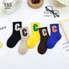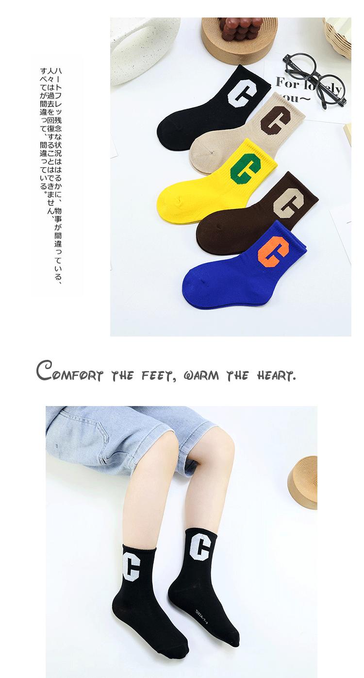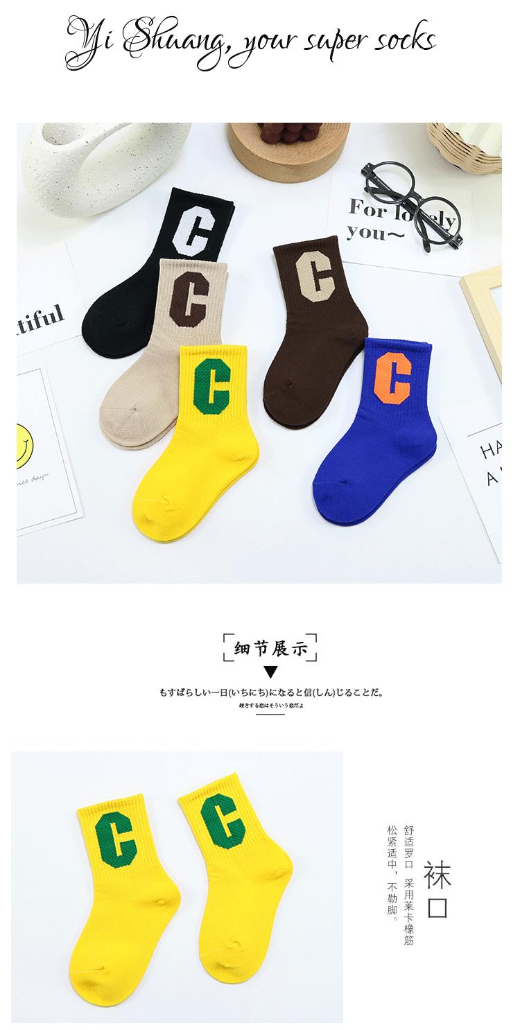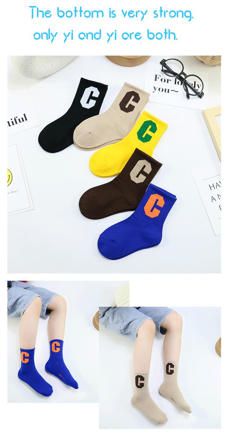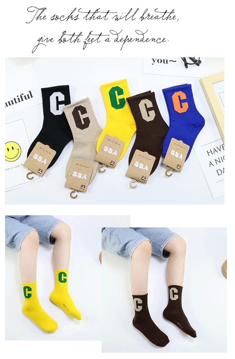 Meias infantis Yi Pair Outono e Inverno Novo estilo coreano Grande letra C Meias de comprimento médio Algodão penteado Marca da moda Meias infantis Meias esportivas