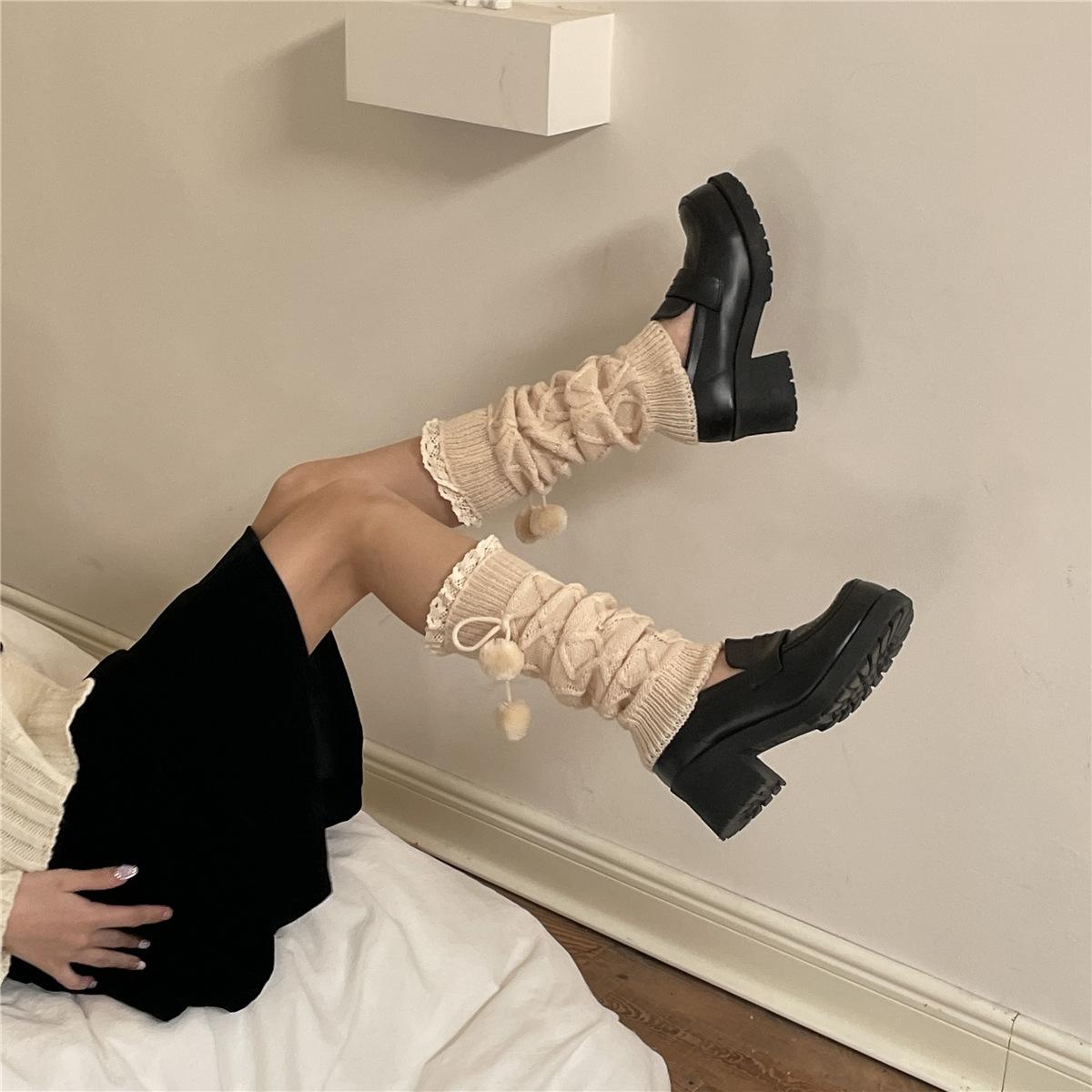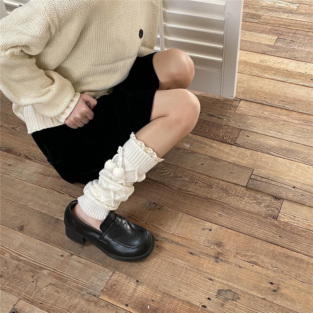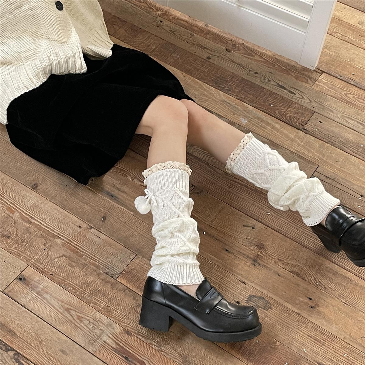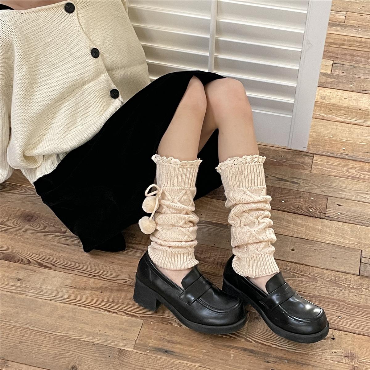 Japonês da menina jk Lace Outono e Inverno Mid-comprimento Meias Bow Fur Ball Meias lolita Stacks