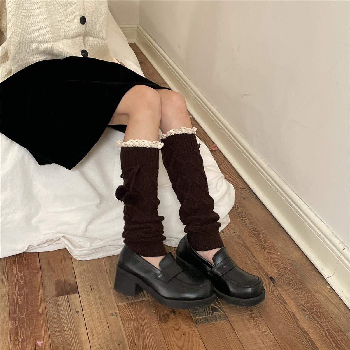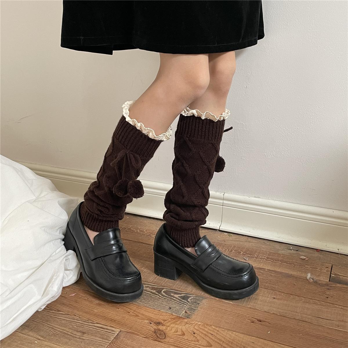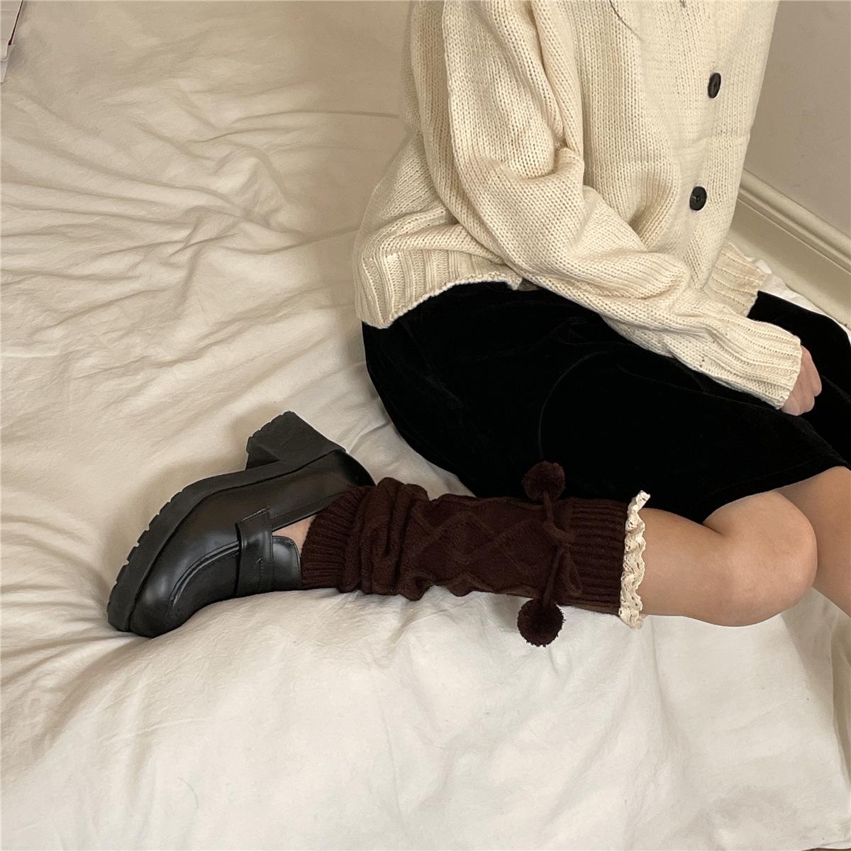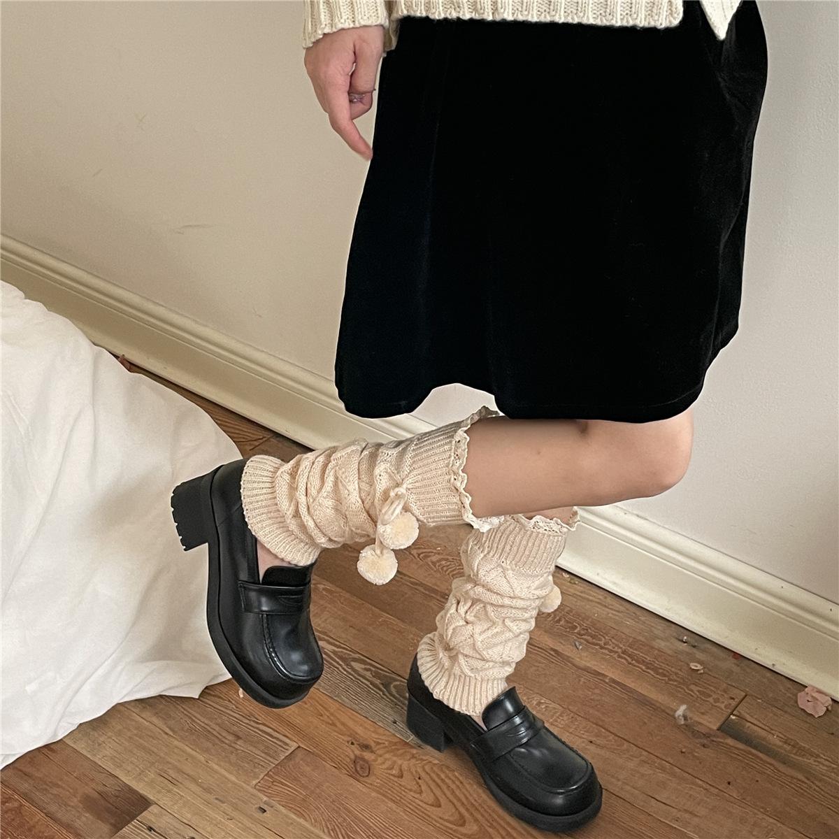 Japonês da menina jk Lace Outono e Inverno Mid-comprimento Meias Bow Fur Ball Meias lolita Stacks