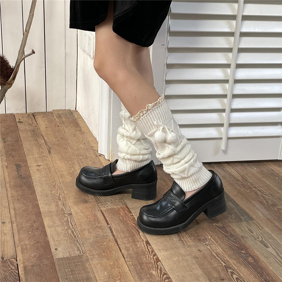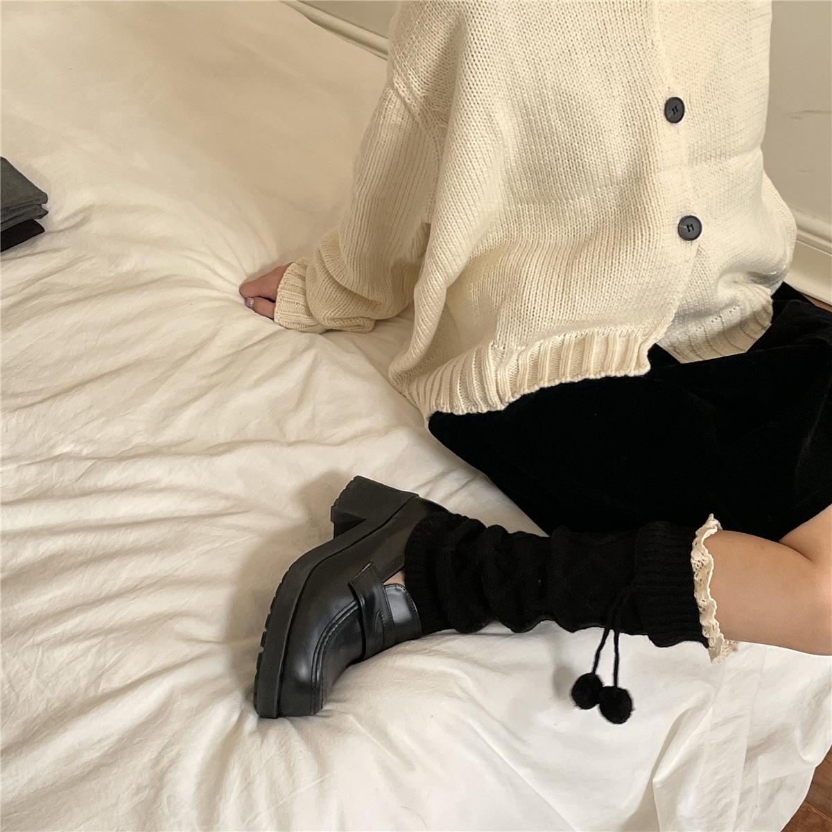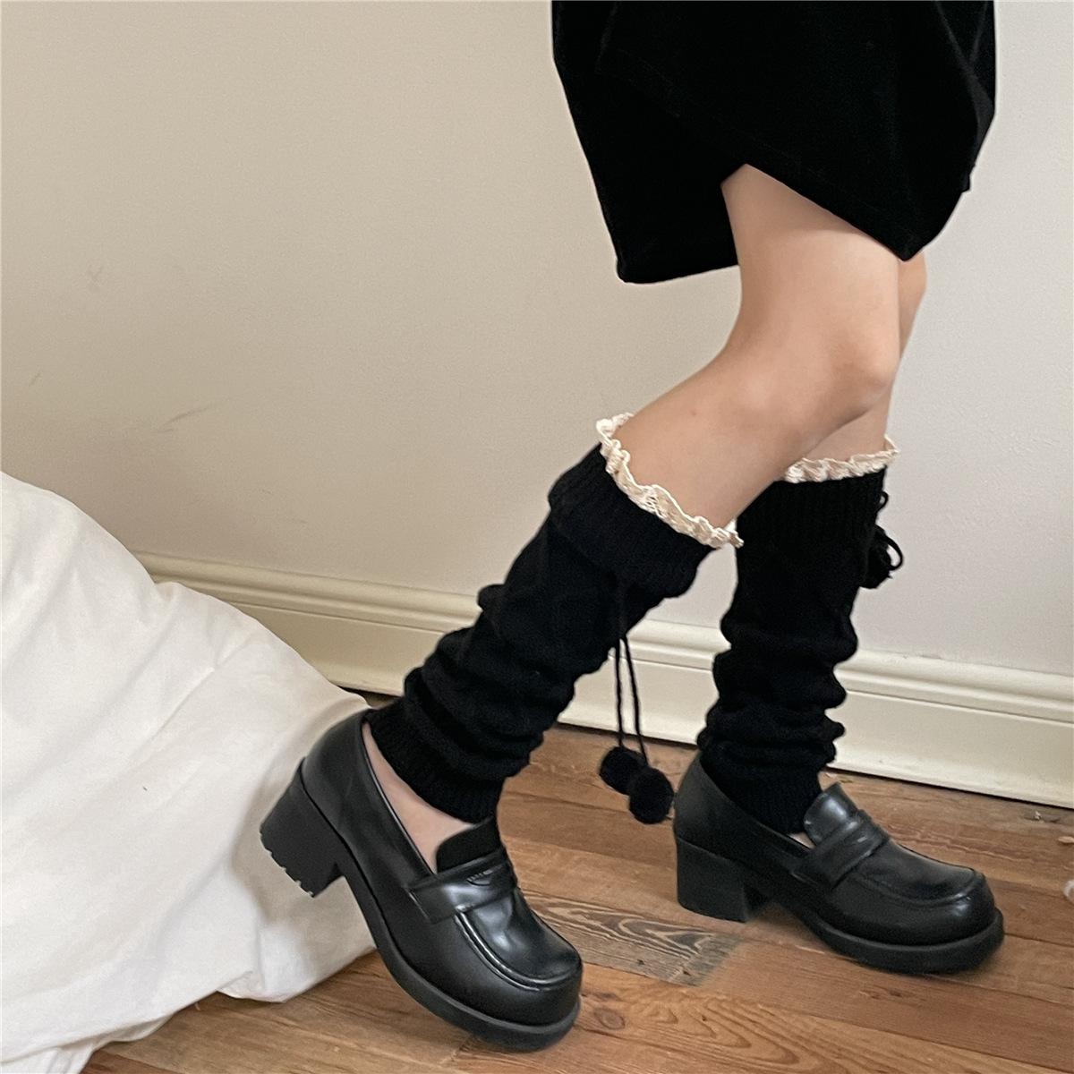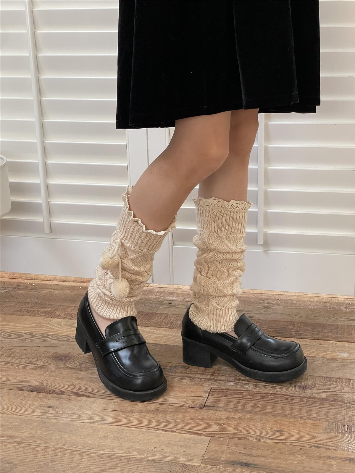 Japonês da menina jk Lace Outono e Inverno Mid-comprimento Meias Bow Fur Ball Meias lolita Stacks