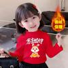2023 Outono e Inverno Novo Ano Novo Infantil Roupas Fofas Coelho Vermelho Camiseta de Ano Novo Camisa Básica Casual Versátil Moderna