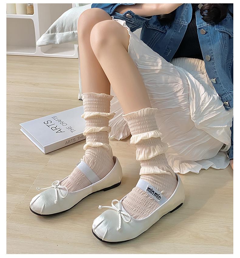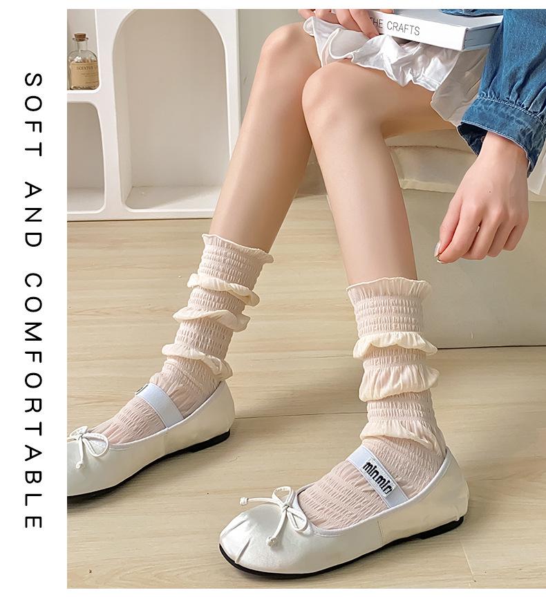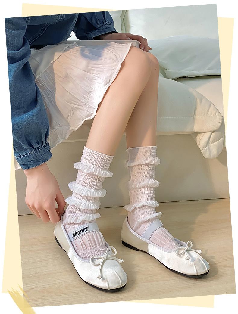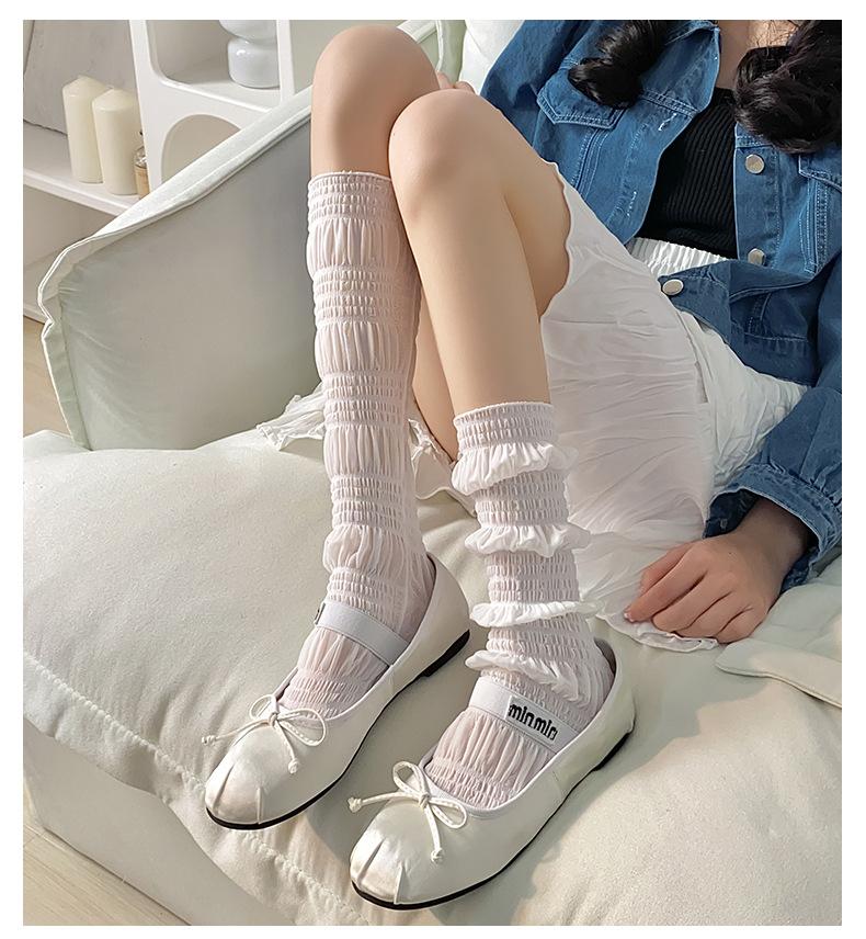 Meias para meninas Verão Fino Estilo Estrangeiro Estilo Coreano Meias Infantis de Panturrilha Empilhadas Meias de Perna Pequena Princesa Menina Meias de Estudante