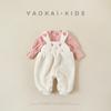 Macacão Infantil Tipo Aberto com Botão de Pressão Novo Design Macio Refinado Amigável à Pele Tecido de Veludo Alemão Macacão para Bebê Rastejar
