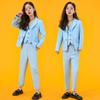 Blue three-piece suit (vest + shirt + shorts + tie)