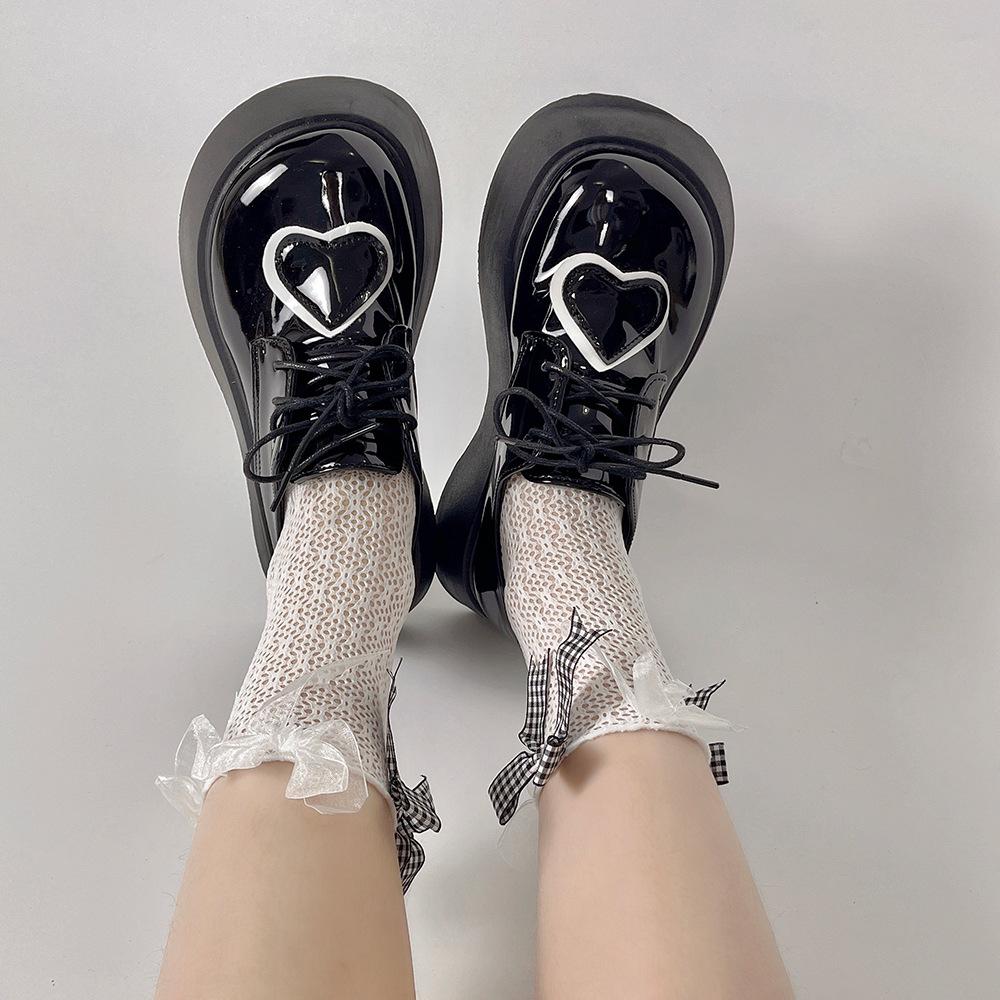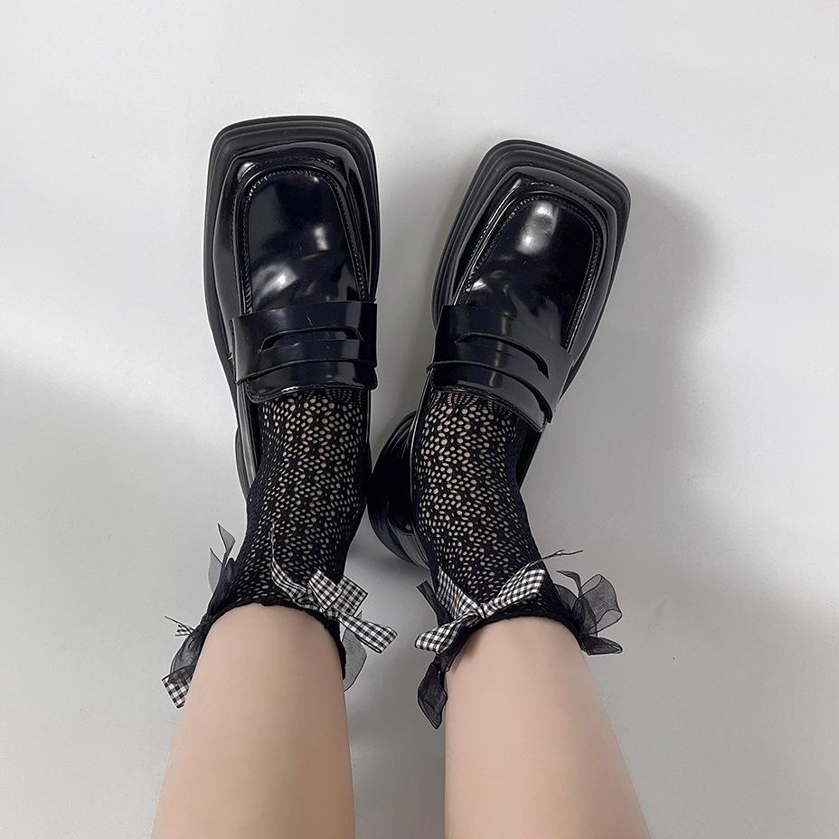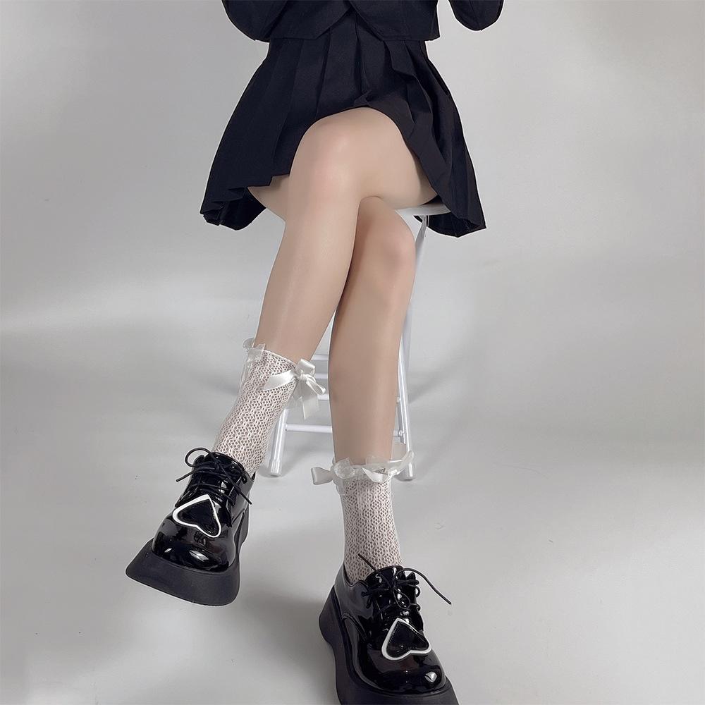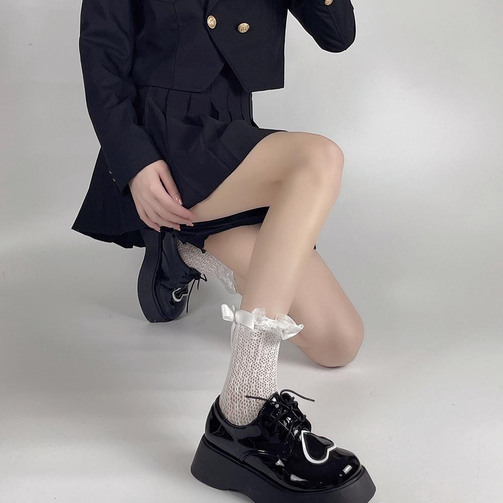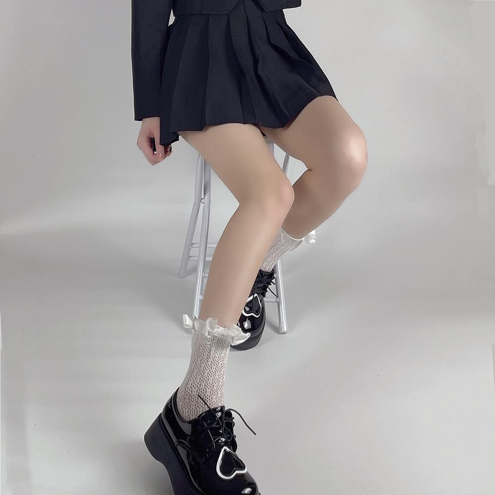 Estilo japonês e coreano novo laço xadrez malha renda oca net meias curtas meias brancas empilhadas menina bonito