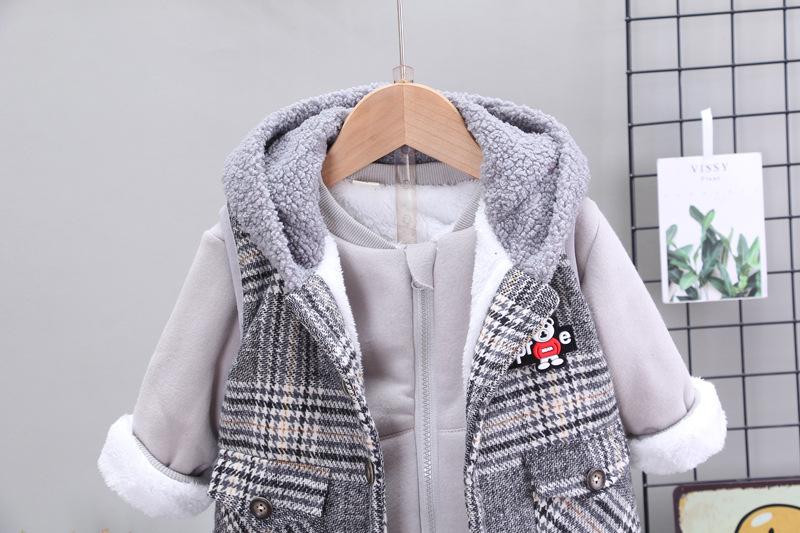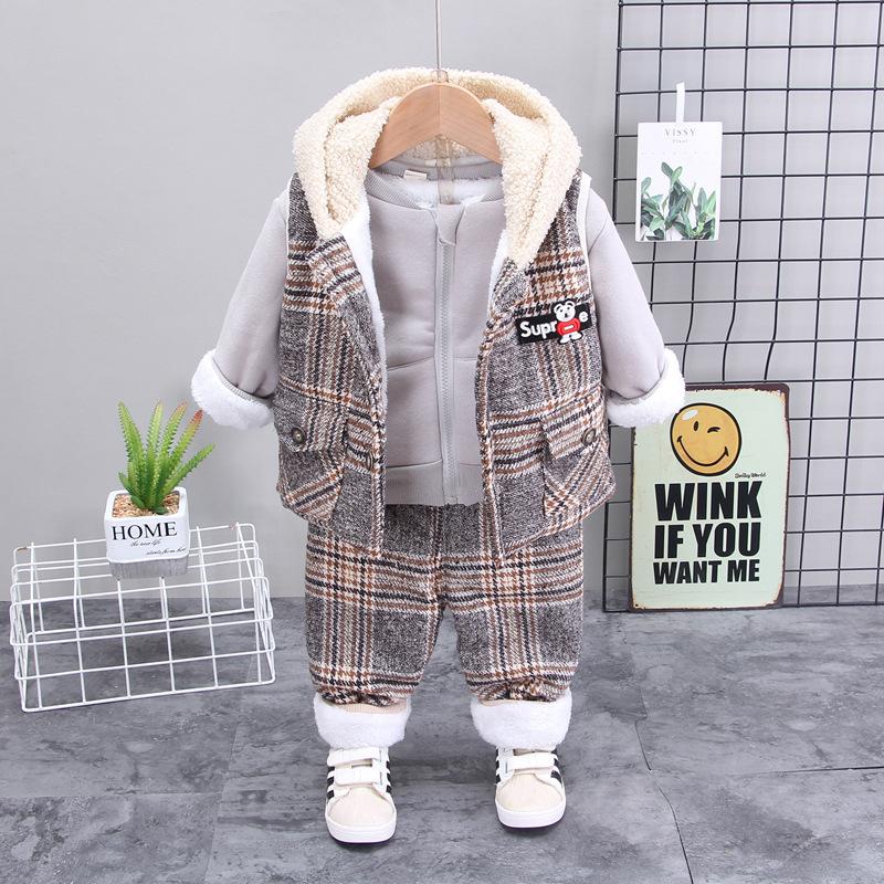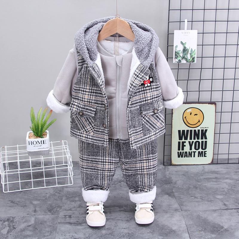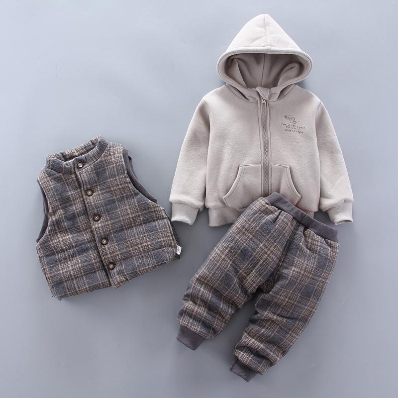 Roupas de inverno para meninos, roupas de terno para meninos, roupas infantis para meninos, esportes para meninos, outono, forrado de lã 0 1 ano 2 anos e meio 3 anos