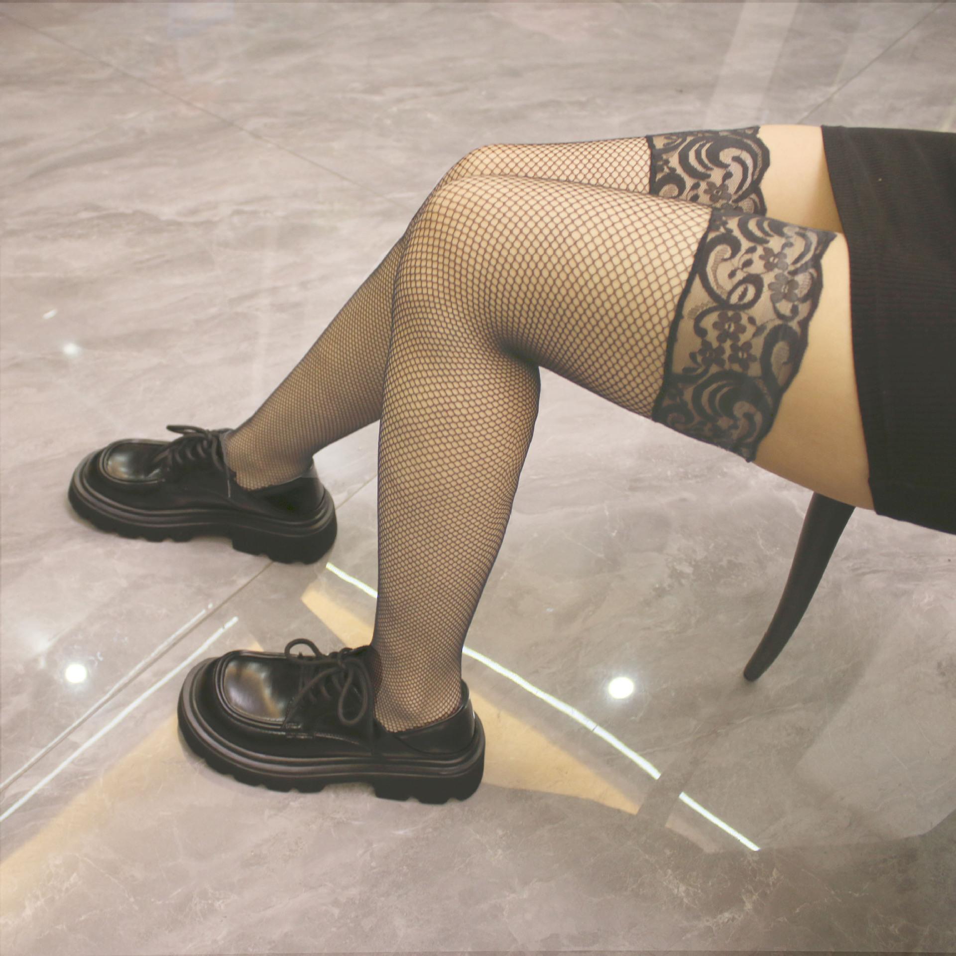 Meias de Renda Arrastão, Meias Altas Acima do Joelho, Meias Ligas, Meias de Seda Pretas para Mulheres, Renda Sexy por Atacado de Malha Fina