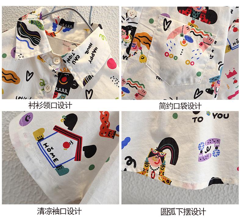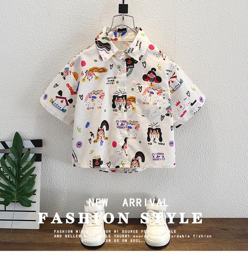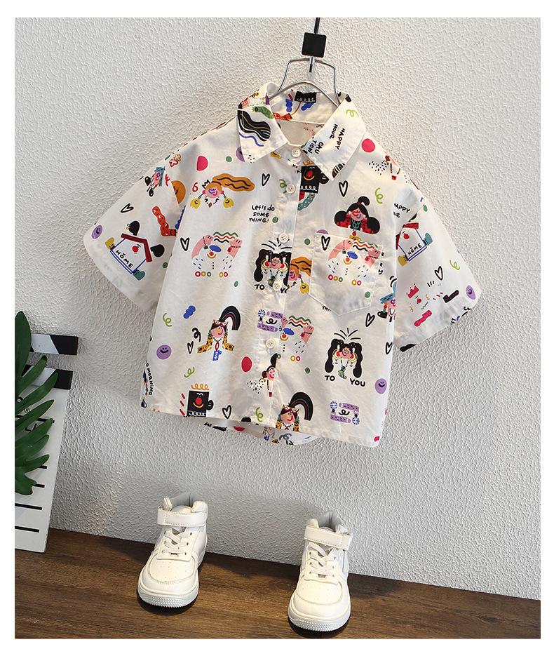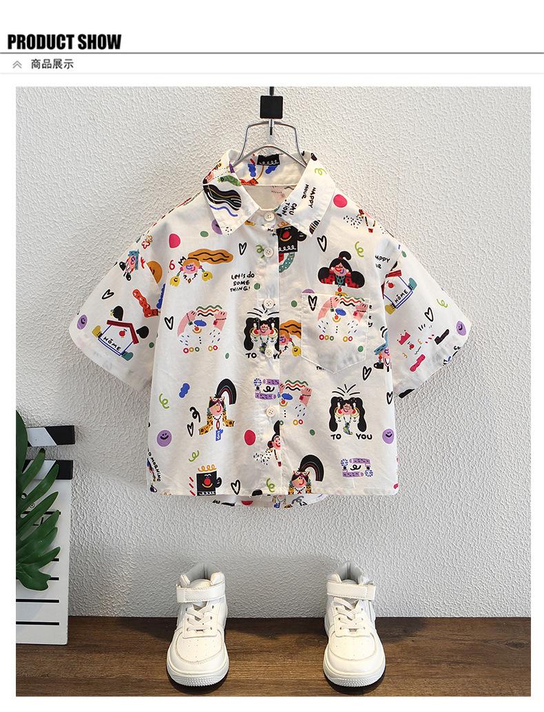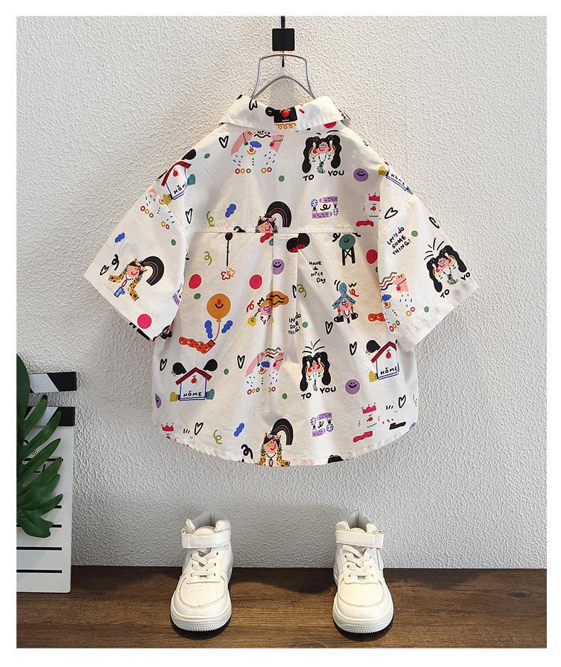 Roupas de verão para crianças Meninos camisa de manga curta Baby Casual Shirt 2024 Verão New Boys Loose Cartoon Top