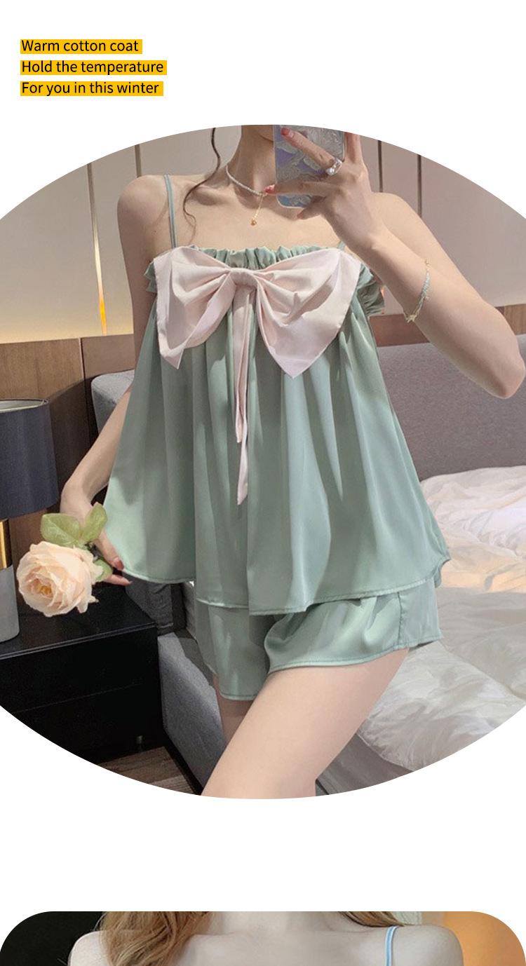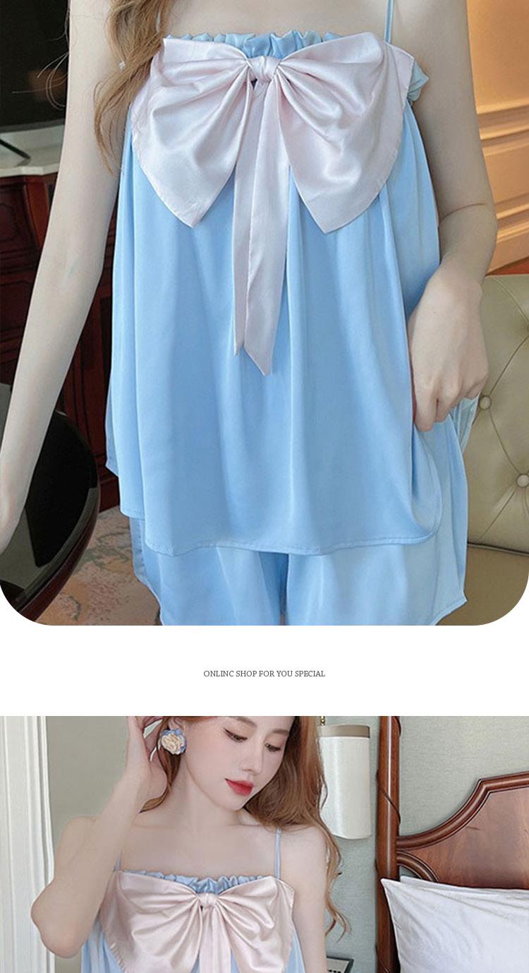 Compre Pijama feminino de seda sintética com suspensórios, duas peças, colete pequeno para casa, atacado no atacado no Joom.pro