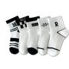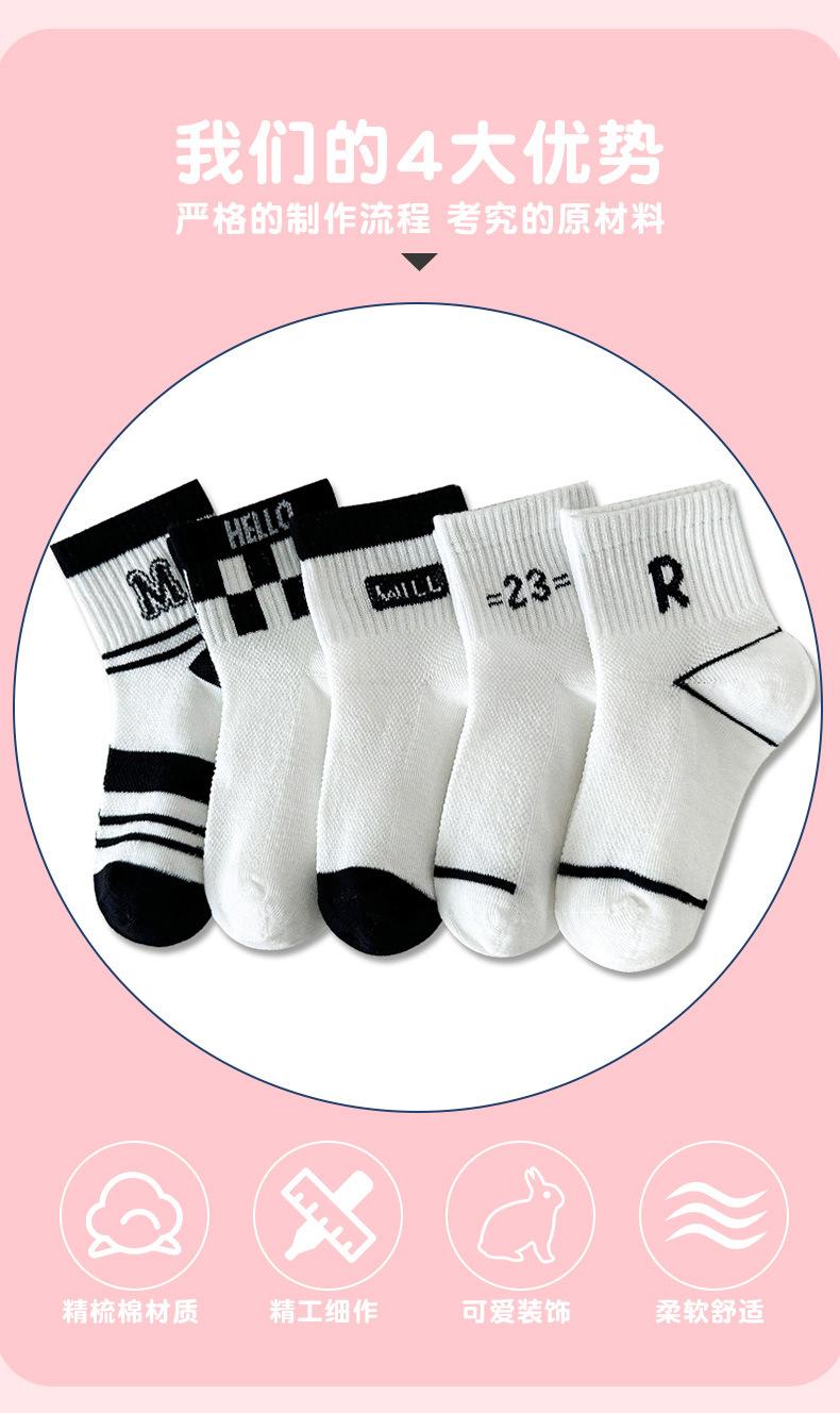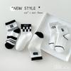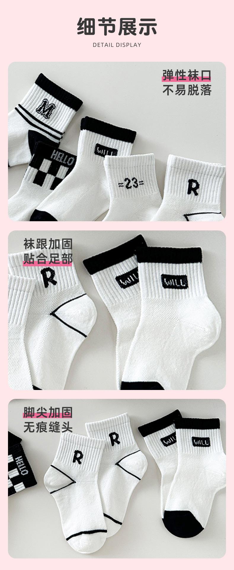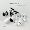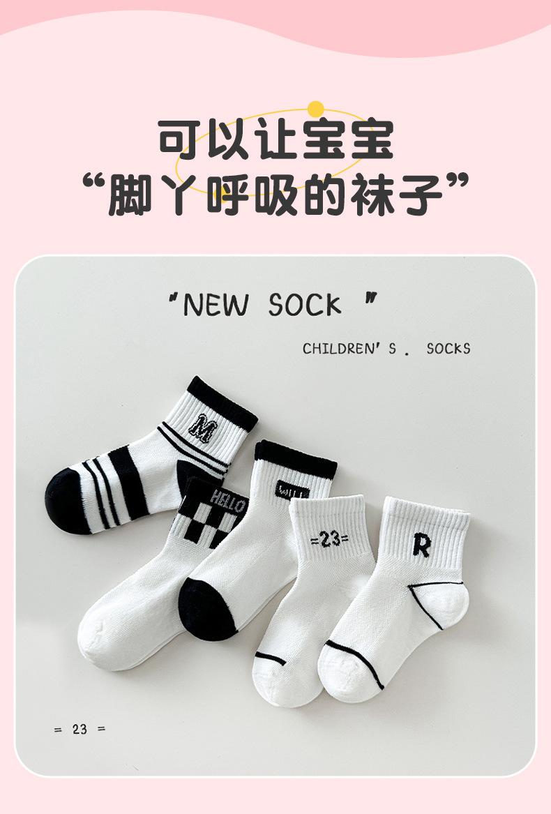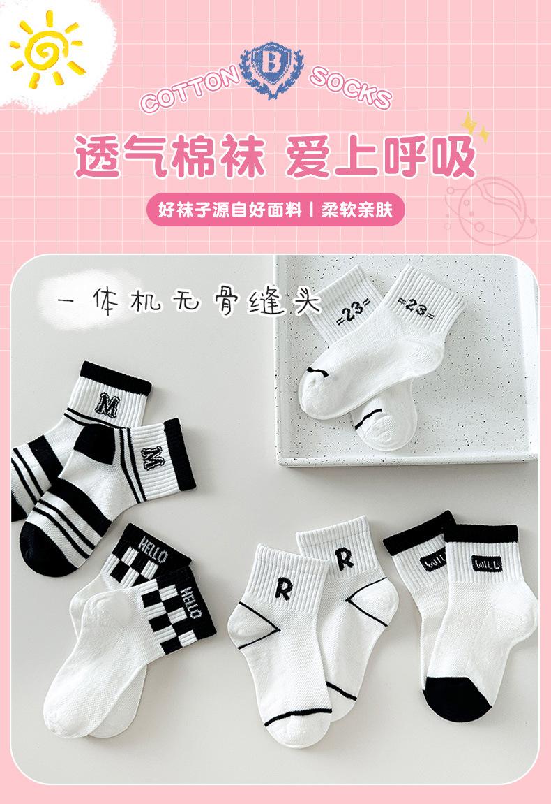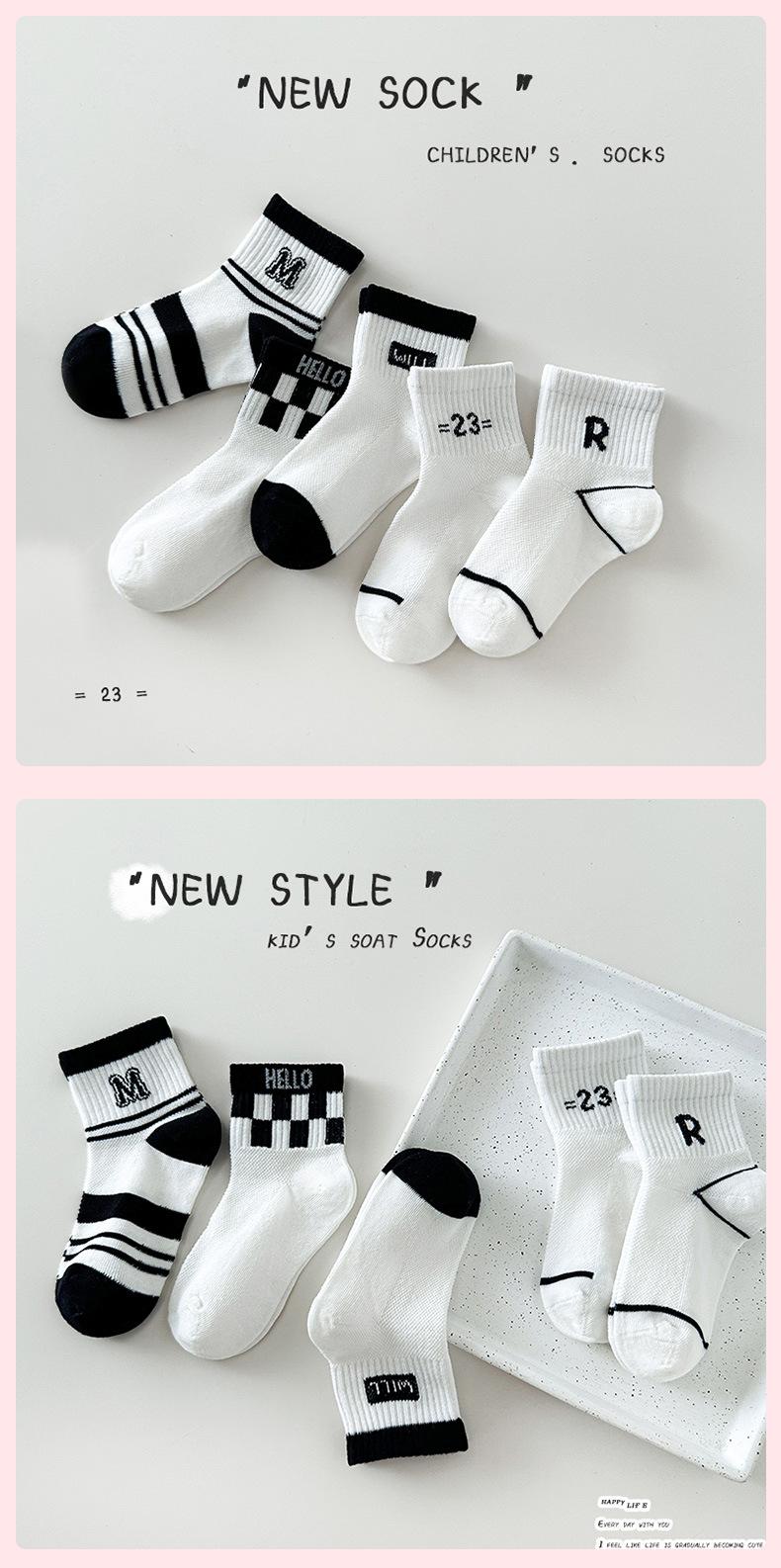 Meias infantis malha primavera e verão algodão penteado fino preto e branco letras esportivas meias infantis meias respiráveis absorventes de suor para meninos e meninas