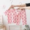 Meninas 'Ice Silk Home Suit Western Style Verão Novo Estilo Coreano Baby Girls 'Ice Silk Cool Pijamas Home Suit Set
