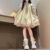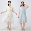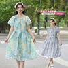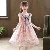 Europeu e americano meninas vestido longo saia médio e grande crianças de manga curta malha desempenho anfitrião vestido de princesa cross-border uma peça nova
