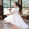 Vestido longo de princesa para crianças europeias e americanas, longo, até o chão, para meninas médias e grandes, vestido de noiva branco sem mangas para meninas de flores