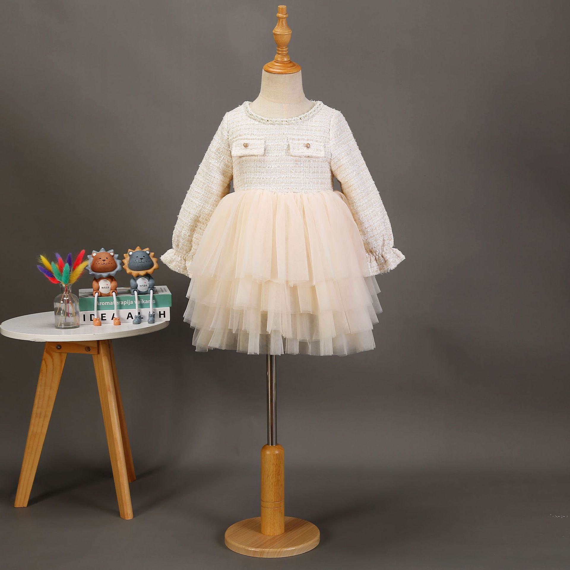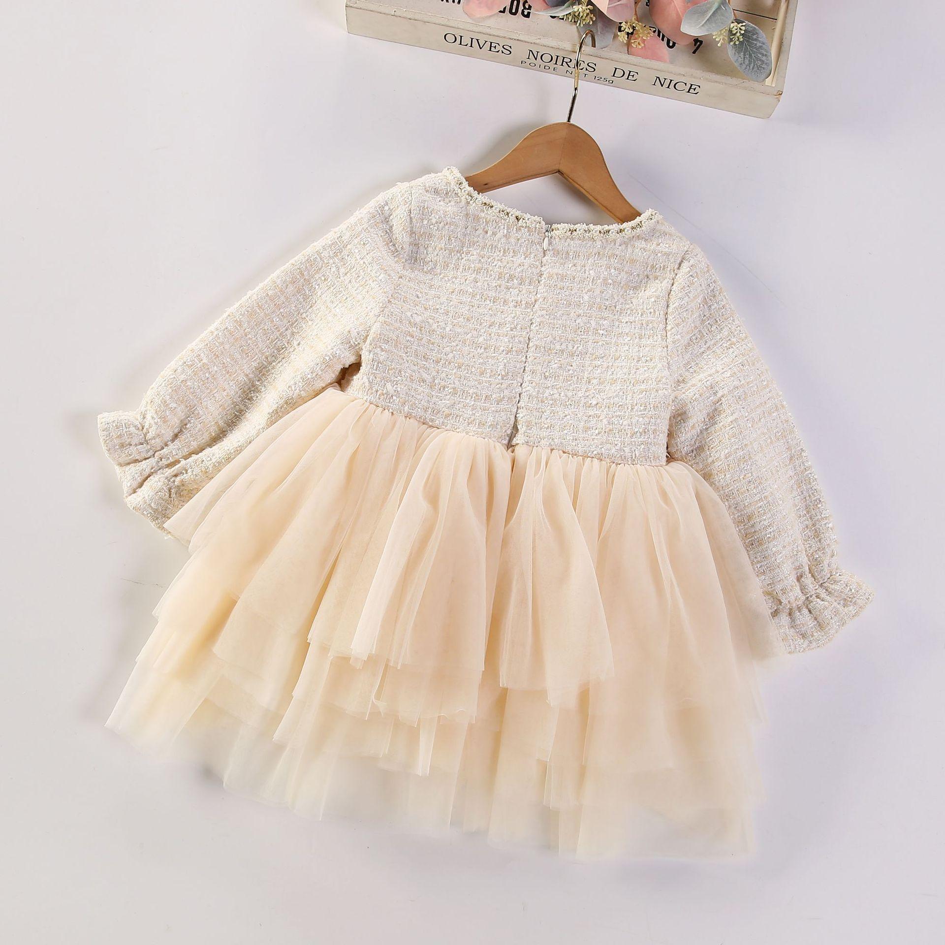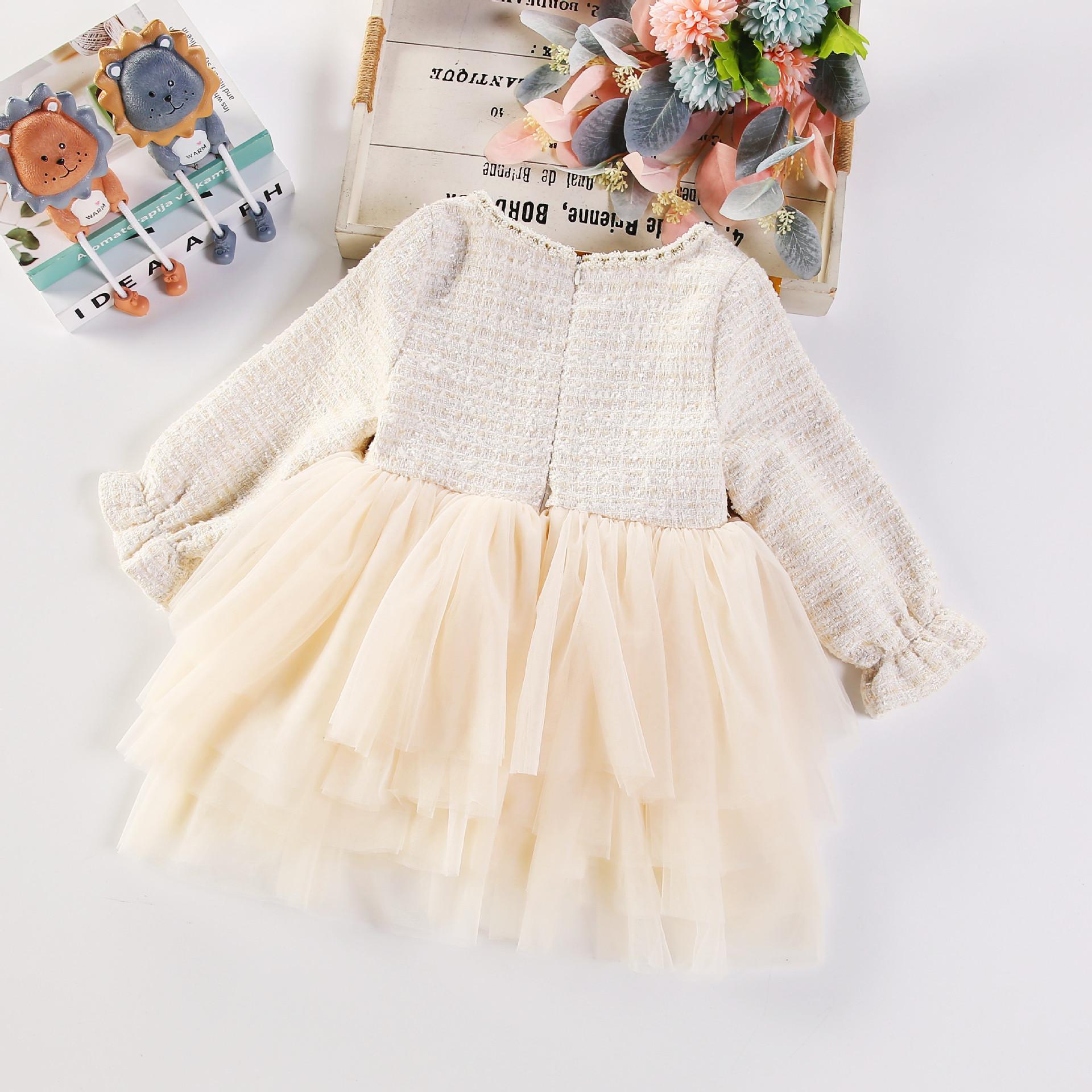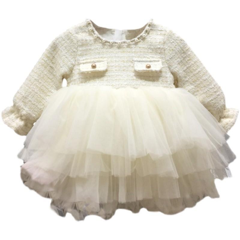 Estilo coreano bebê menina vestido outono e inverno pequeno perfumado malha puffy saia elegante crianças bebê um ano vestido de princesa vestido