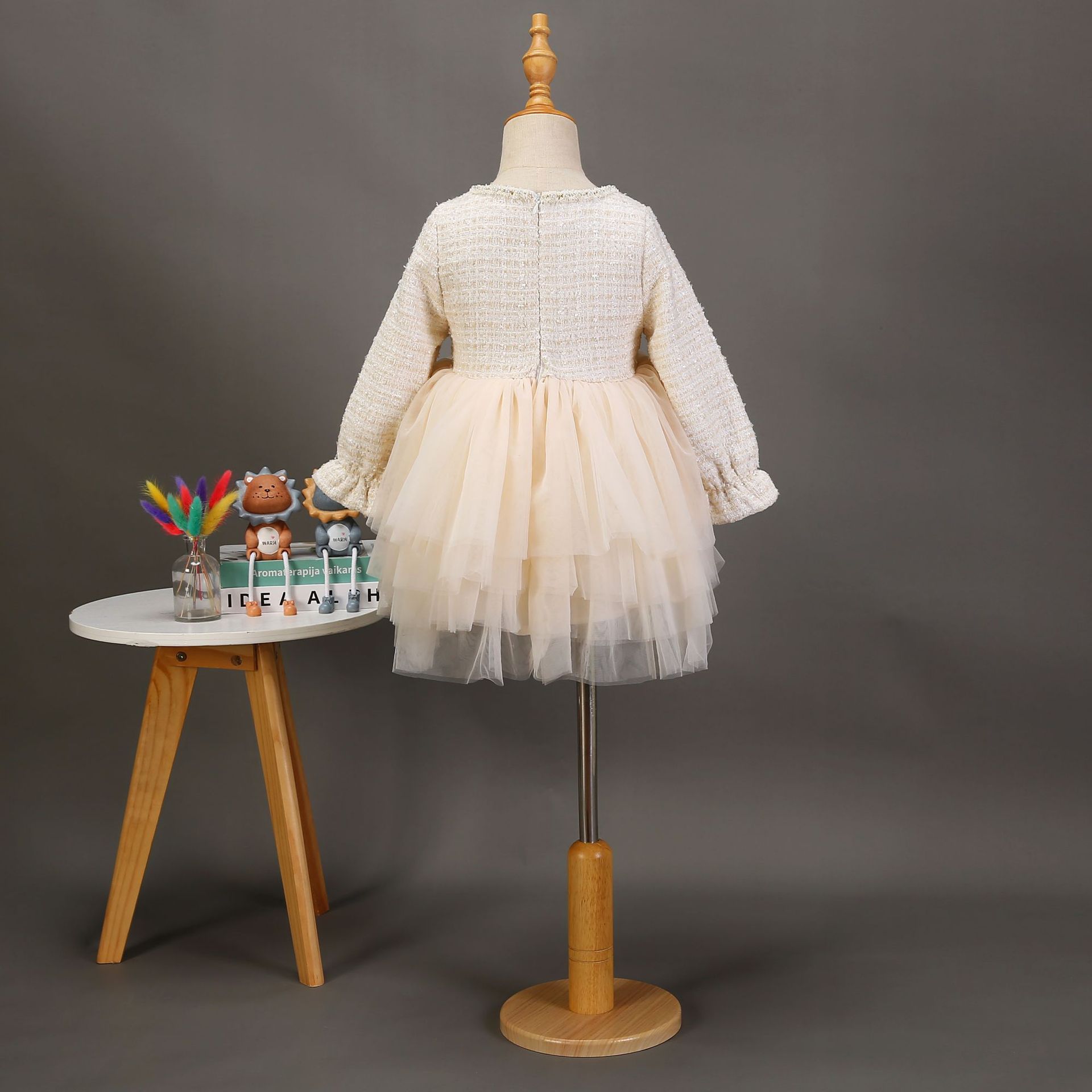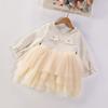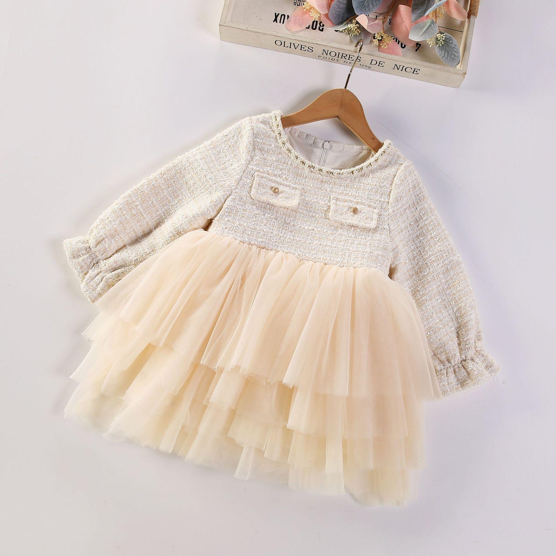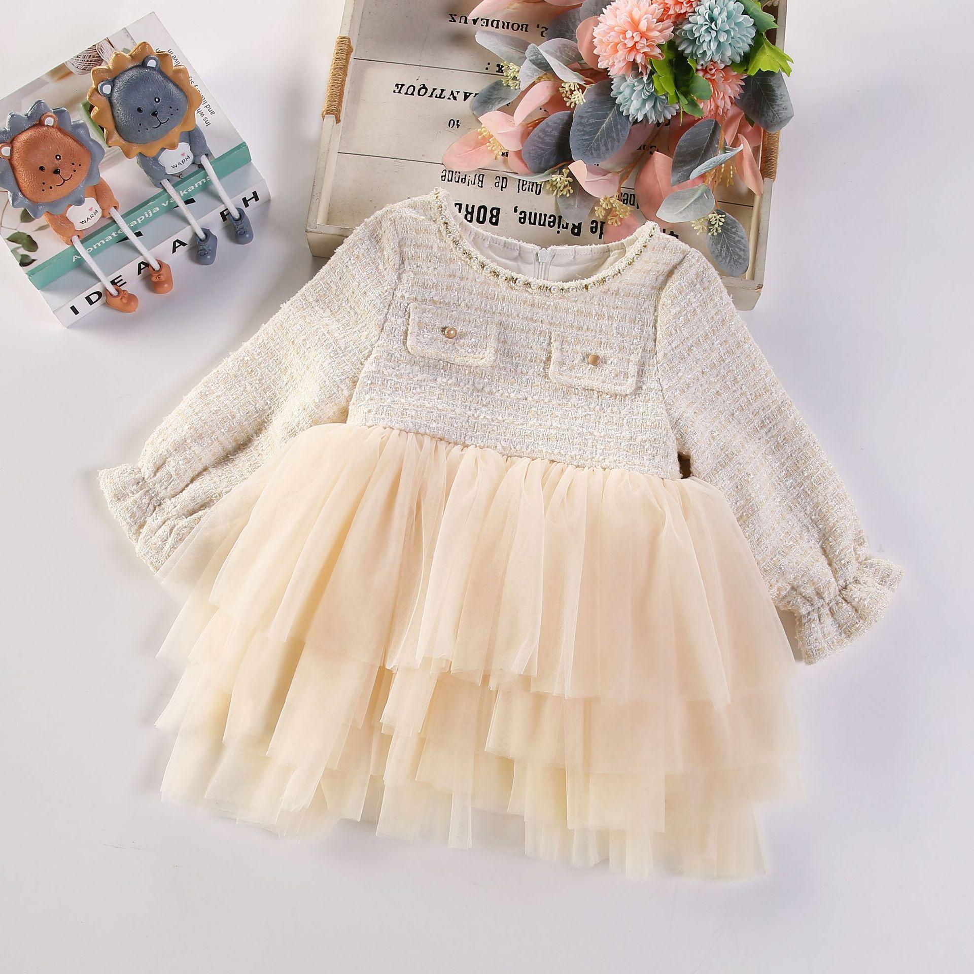 Estilo coreano bebê menina vestido outono e inverno pequeno perfumado malha puffy saia elegante crianças bebê um ano vestido de princesa vestido