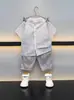 Terno de Verão para Meninos 2025 Nova Roupa Infantil Bebê Listrado Roupas Colete Conjunto de Duas Peças Shorts Roupa Infantil