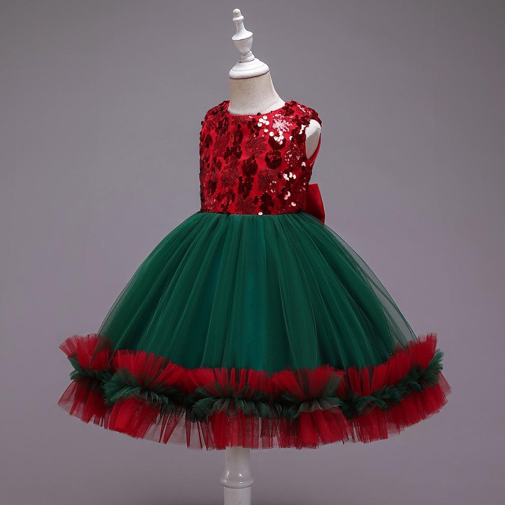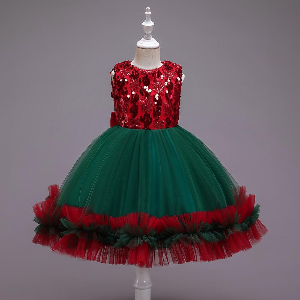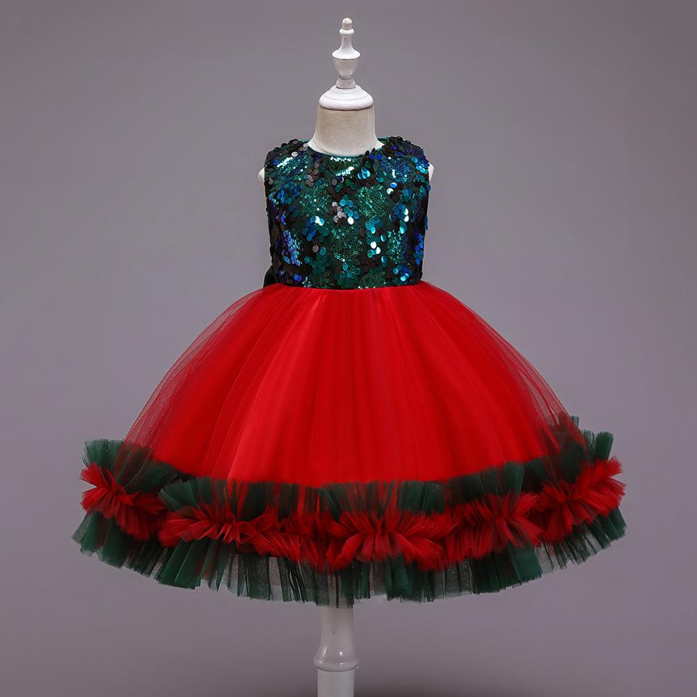 Baihui vestido de princesa infantil, vestido de princesa para performance de natal, saia de tule de malha para meninas, entrega de uma peçapeça agora