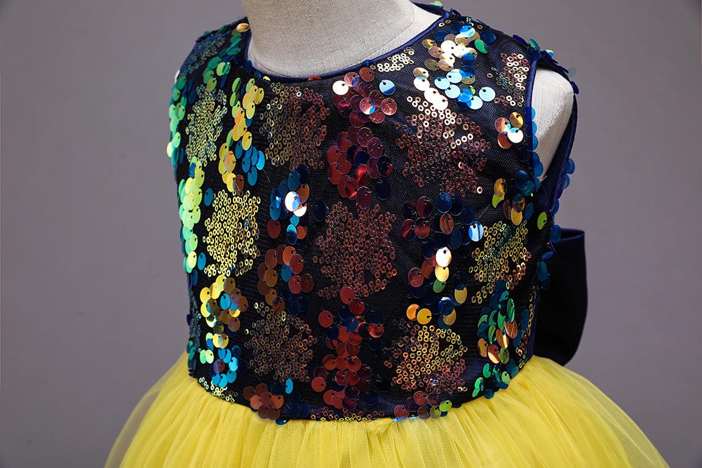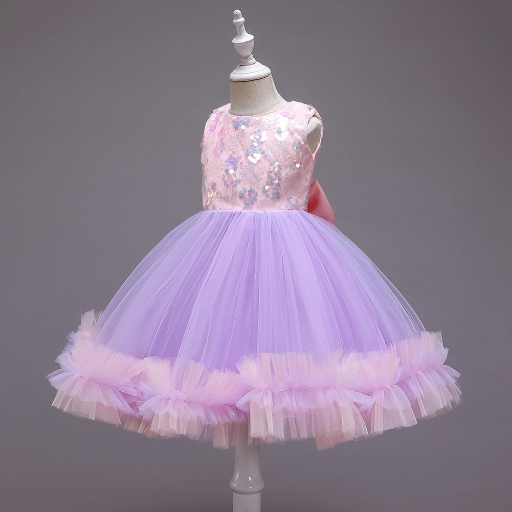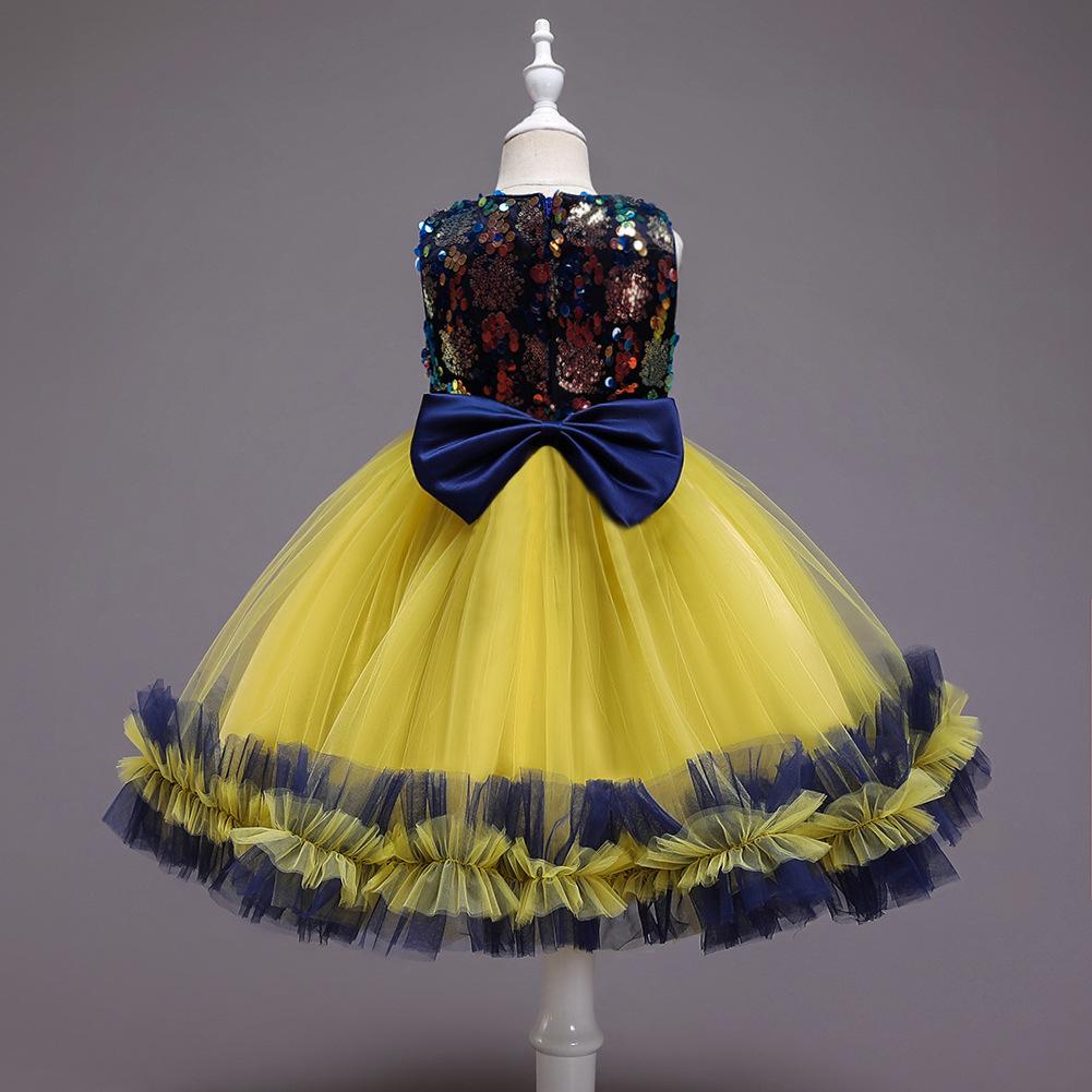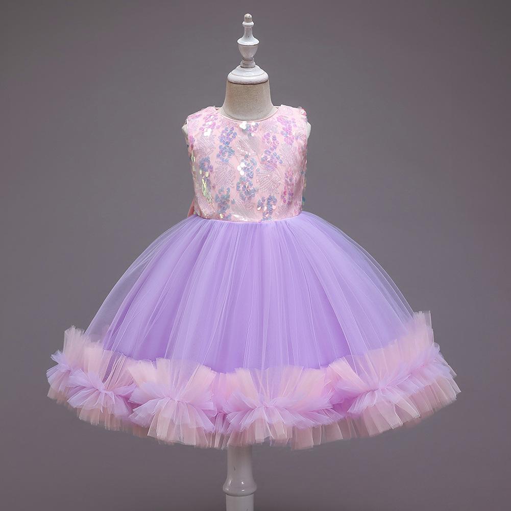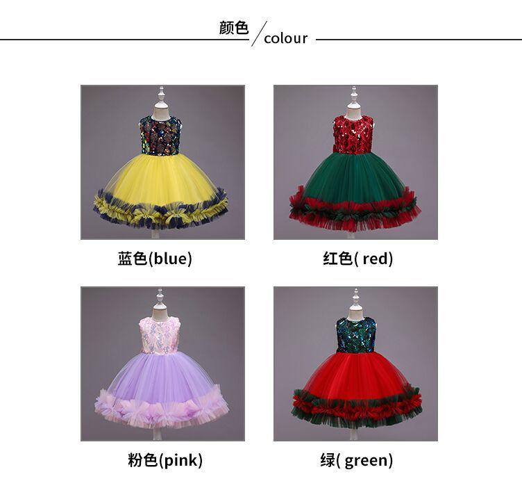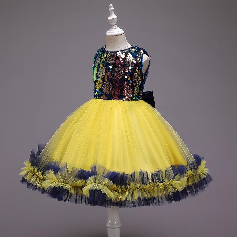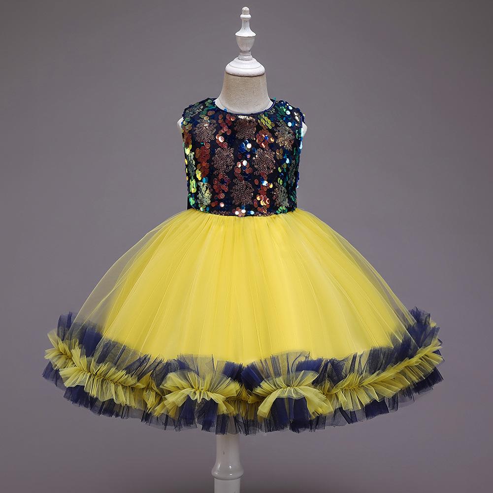 Comércio exterior novas crianças vestido de lantejoulas flor menina passarela vestido de casamento roupas desempenho menina malha fofo vestido de princesapeça agora
