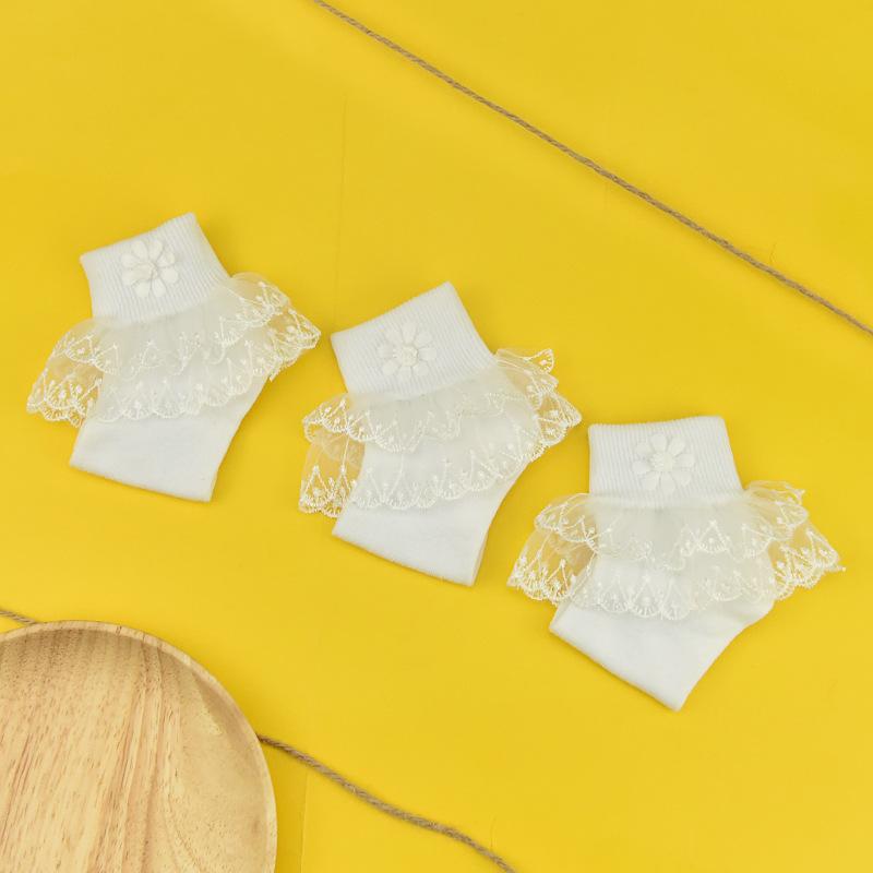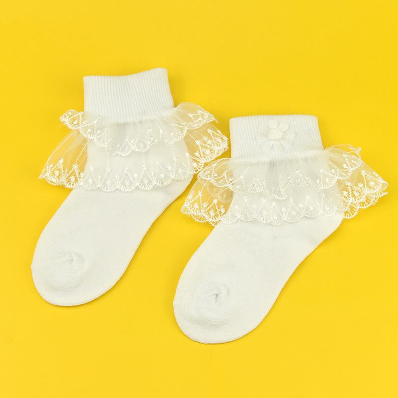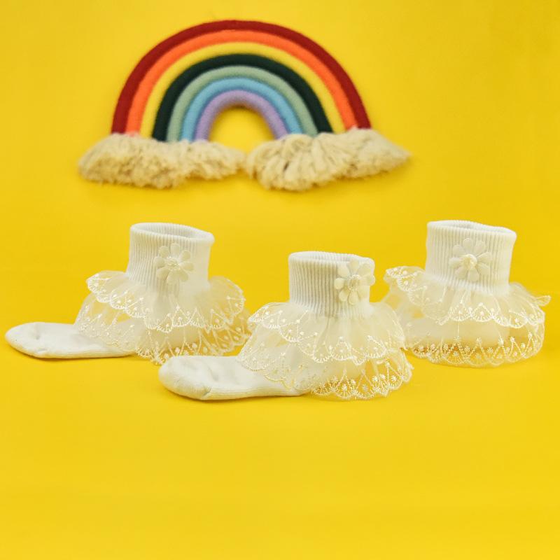 Meias de renda para meninas outono e inverno meias infantis de algodão penteado grosso branco princesa meias de tubo médio de renda meias de bebê