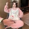 Pijamas Femininos de Outono e Inverno com Fleece, Manga Comprida, Algodão Escovado Leve, Roupa de Dormir para Casal, Pijamas Masculinos Estilo Japonês, Algodão Puro