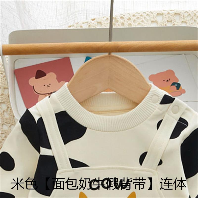Beige [bread bear fake strap] one-piece, Beige [bread cow fake strap] one-piece
