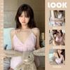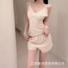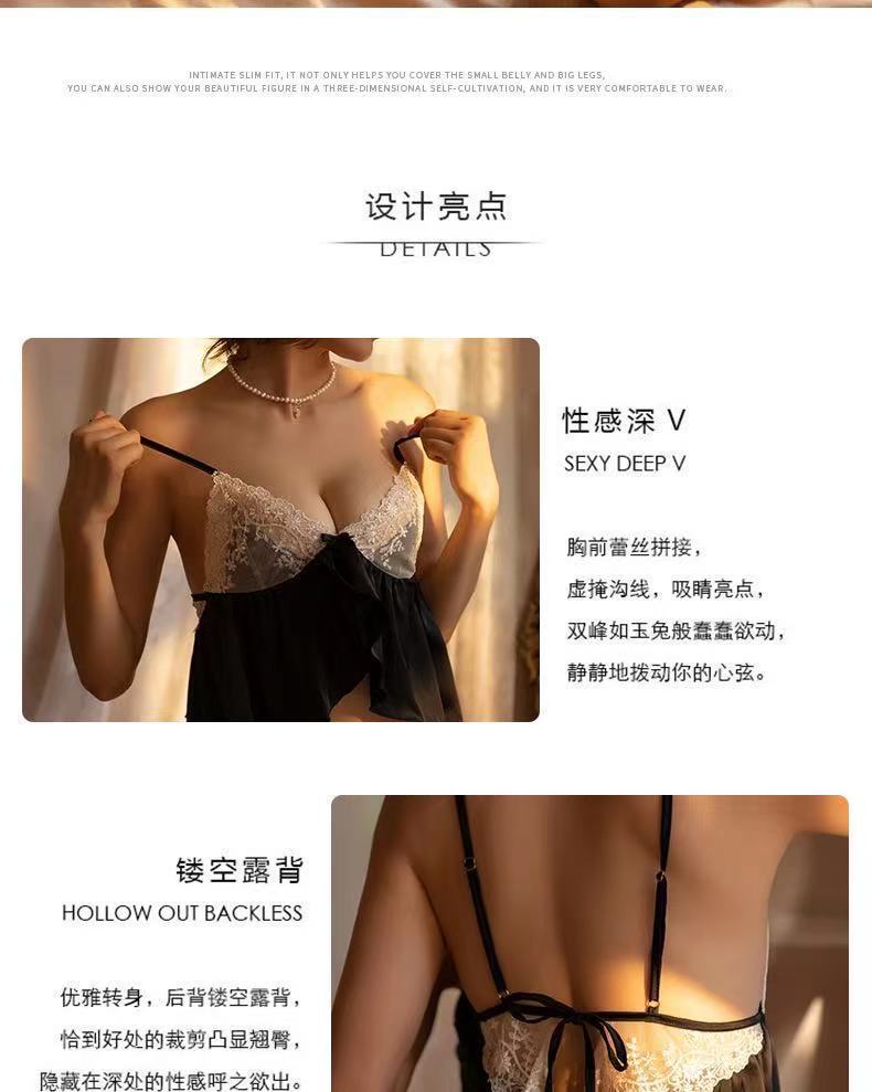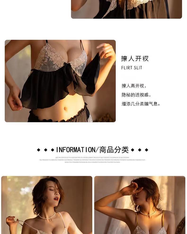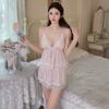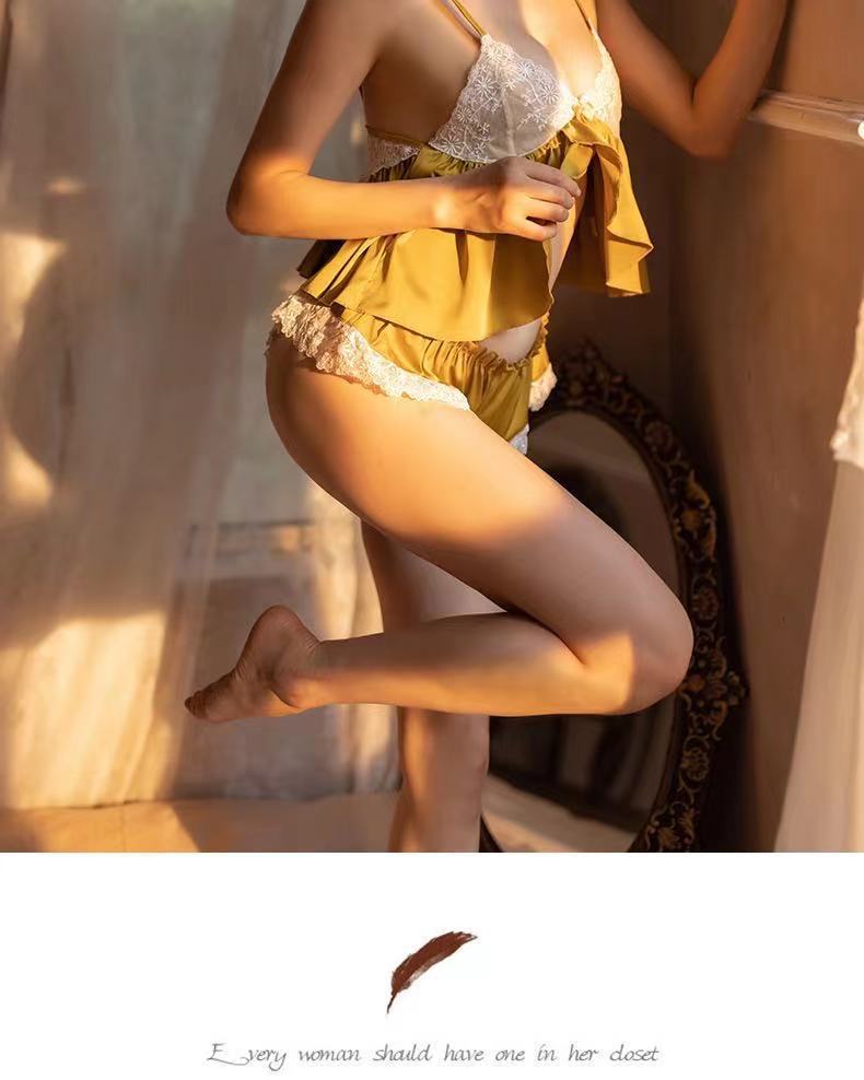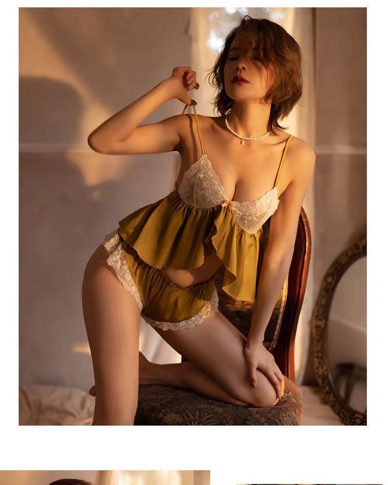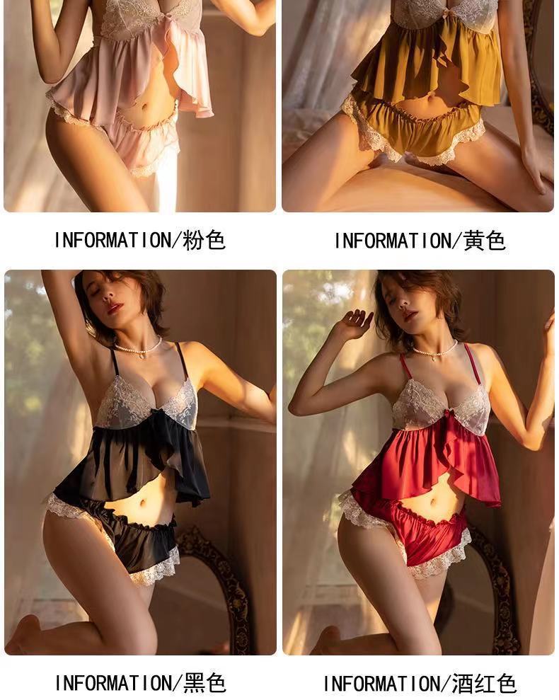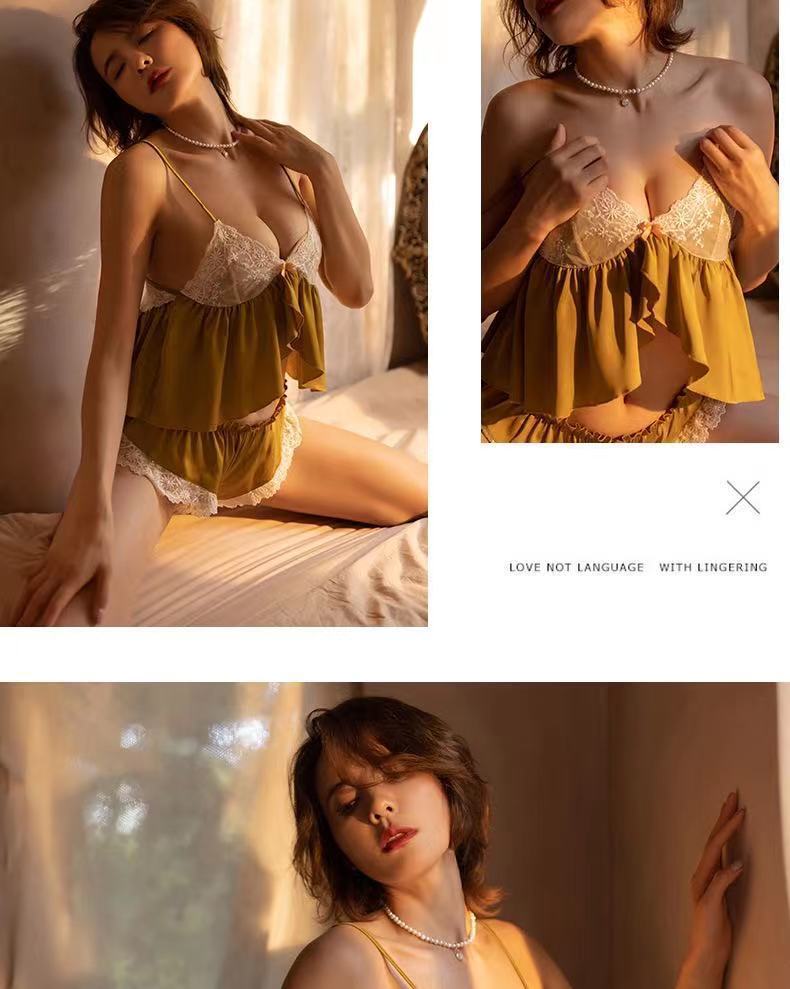 Pijama feminino divertido com renda sexy e duas peças, cor sólida, 713