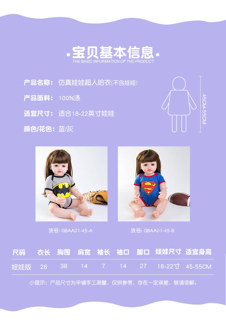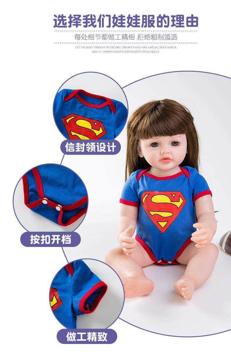Roupas de boneca artificial de 45-55 cm, boneca reborn masculina e feminina, manga curta, bainha triangular, boneca de 22 polegadas, troca de roupa
