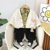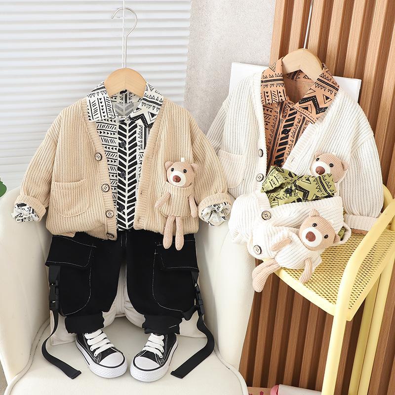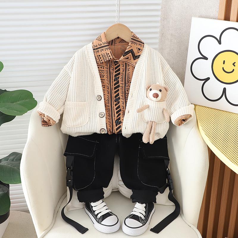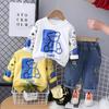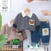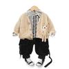 Roupas infantis de outono para meninos terno de roupas de outono bonito xadrez terno de três peças para meninos primavera e outono bebê de 1-3 anos de idade roupas infantis