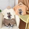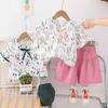 Meninas Bebê Terno de Verão 2024 Novo Terno de Manga Curta Fina de Verão Estilo Ocidental Infantil de Duas Peças