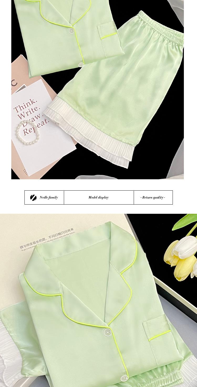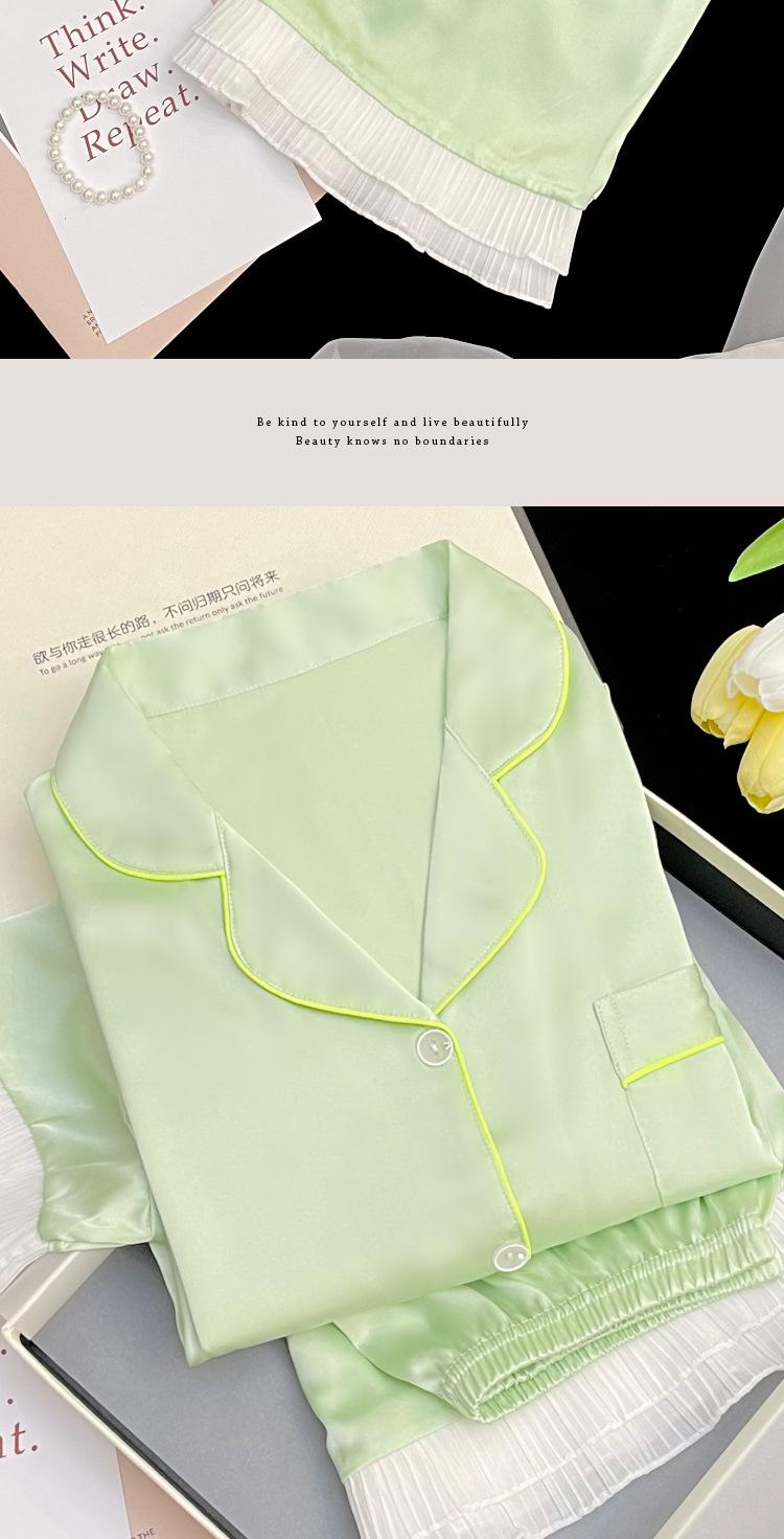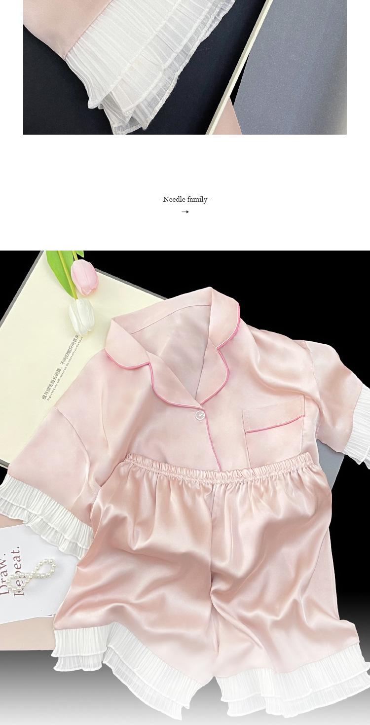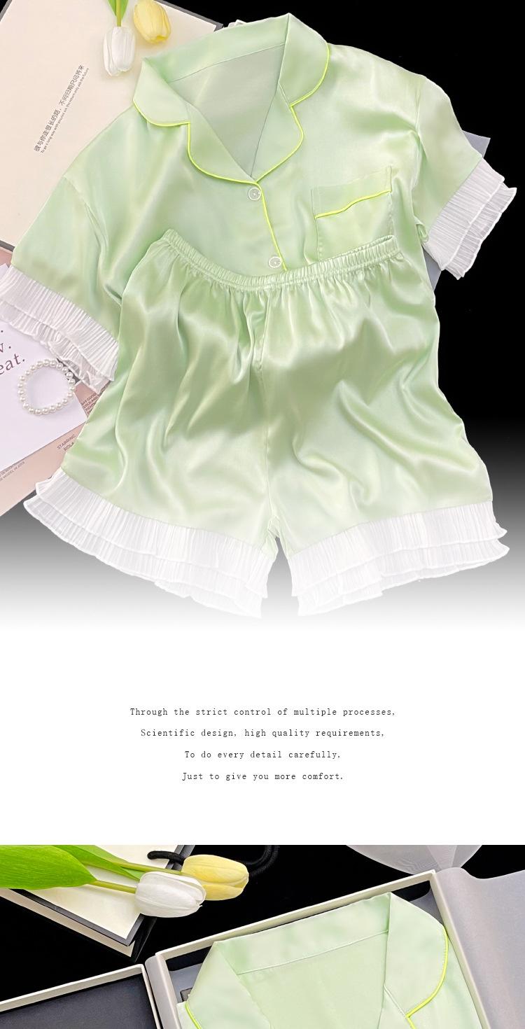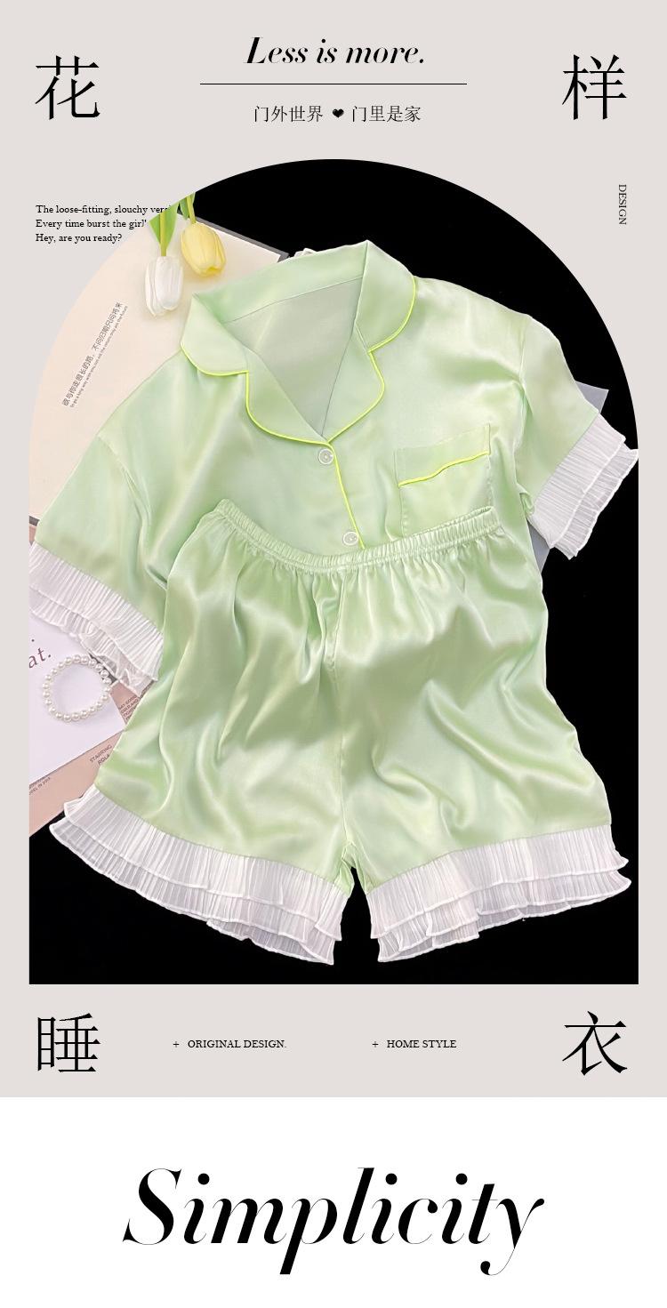 Novo pijama feminino de verão, manga curta, seda gelo, com babados, roupa de casa, atacado