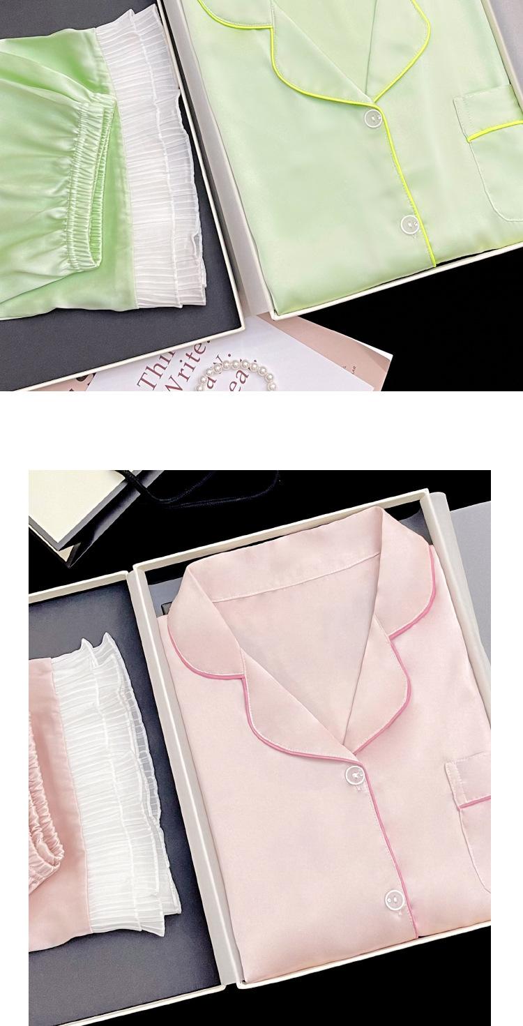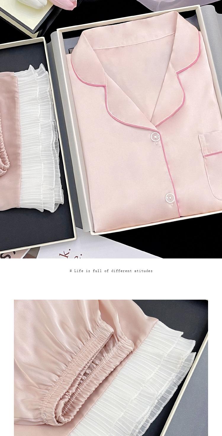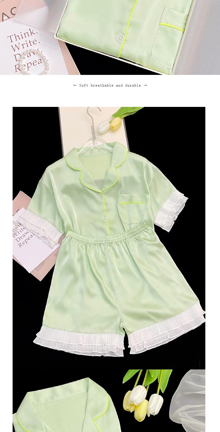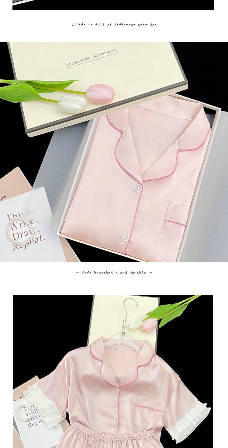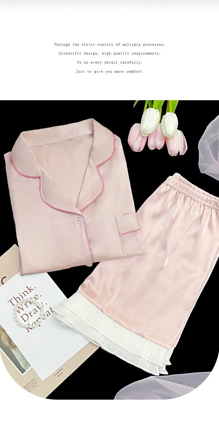 Novo pijama feminino de verão, manga curta, seda gelo, com babados, roupa de casa, atacado