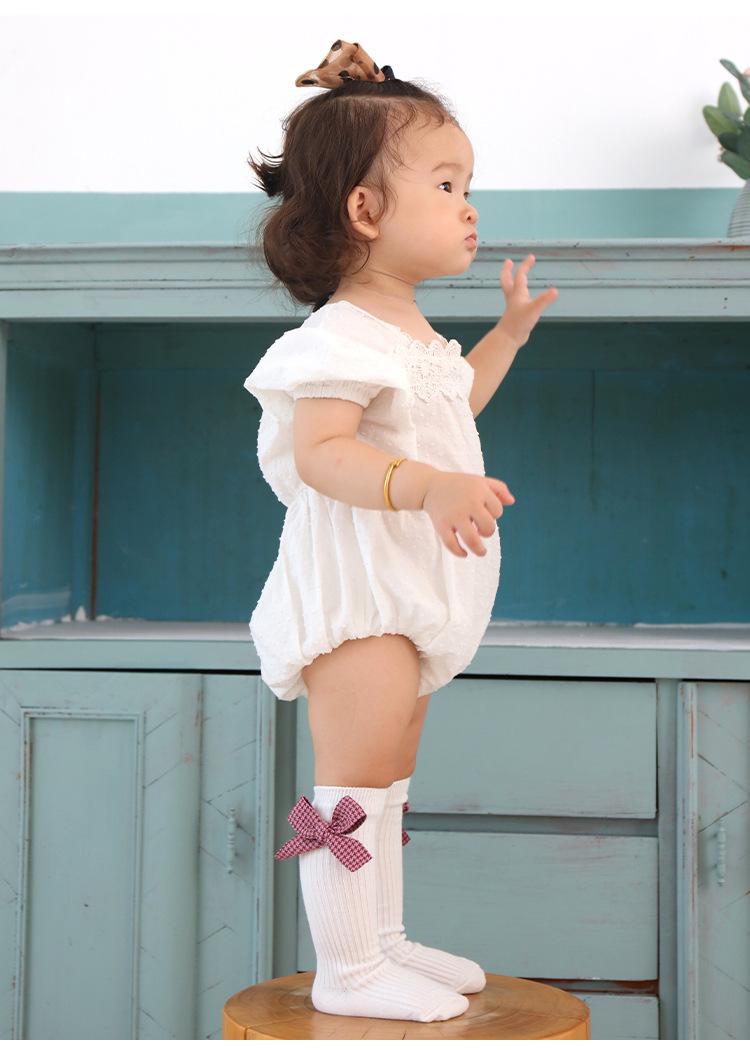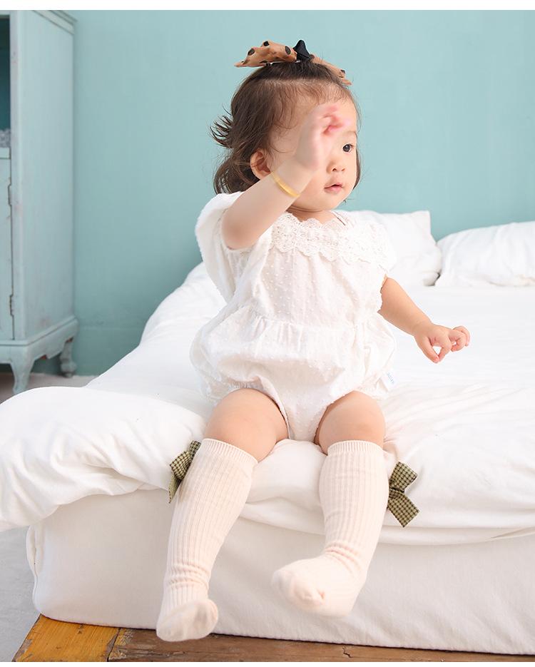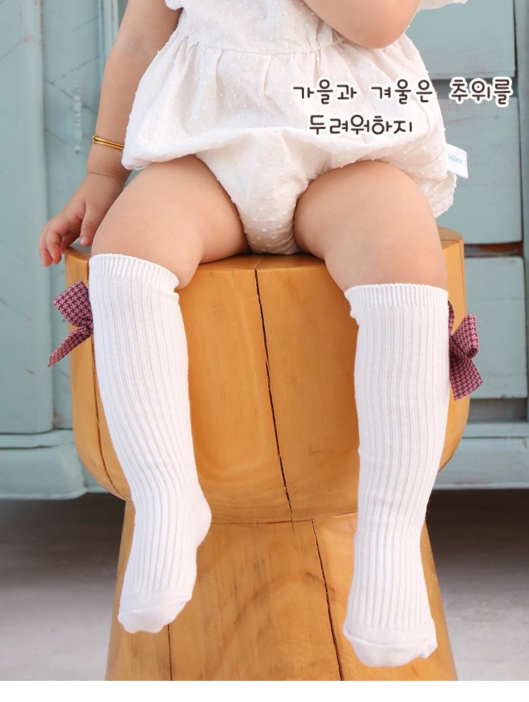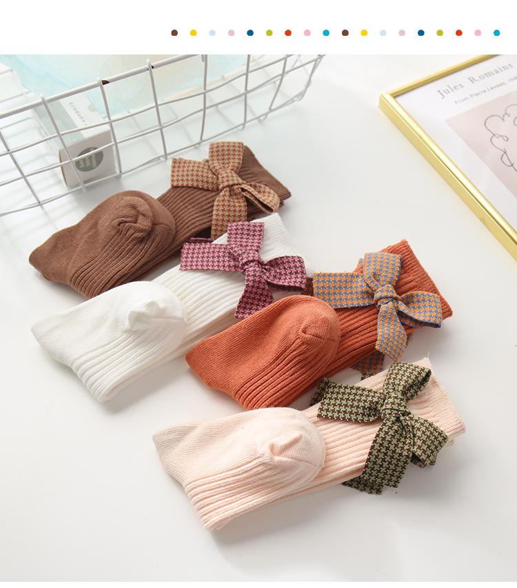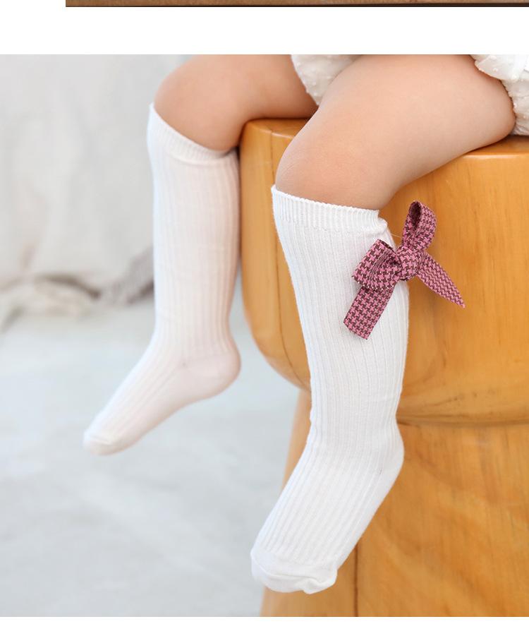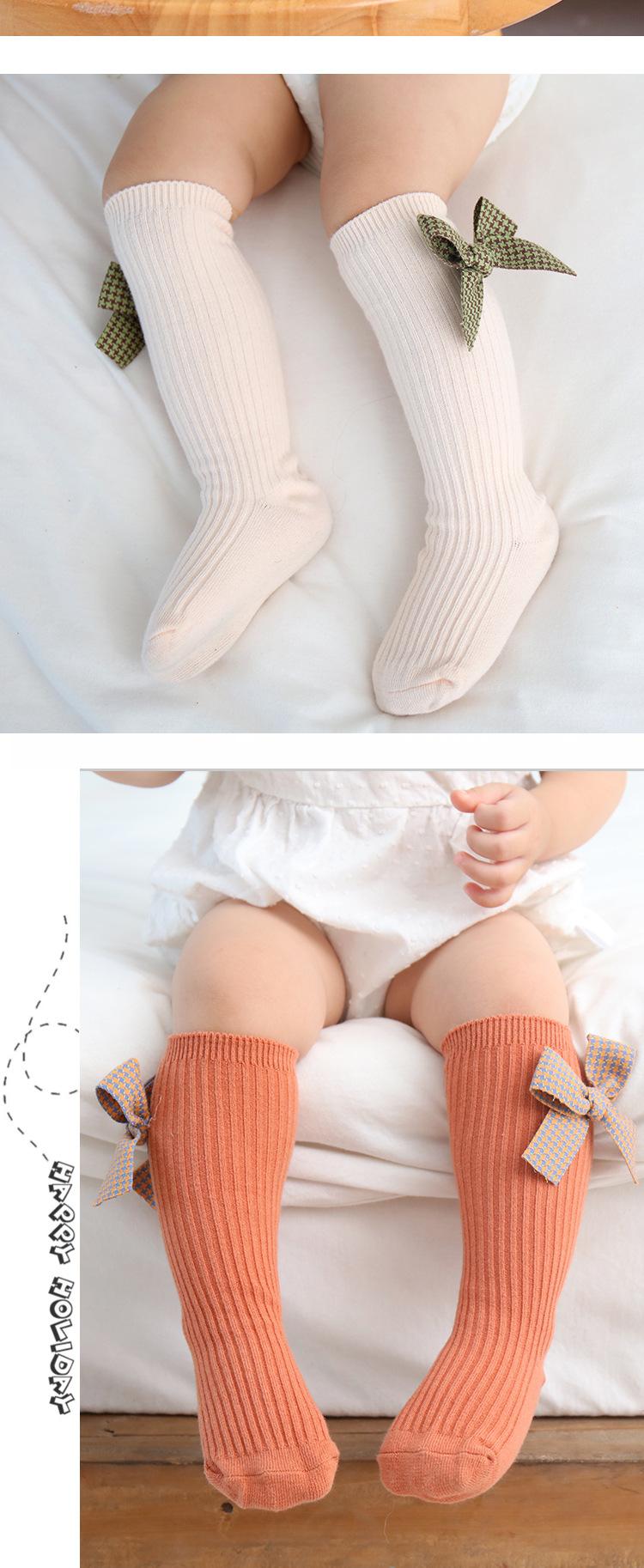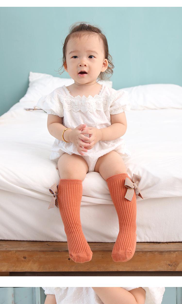 Meias para meninas, primavera e outono, meias de comprimento médio, meias com punho de laço fofo, meias de algodão confortáveis para bebês, todas combinando