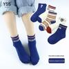 Meias duplas infantis outono e inverno Novo estilo coreano grande letra C meias de panturrilha penteado algodão marca de moda infantil meias esportivas