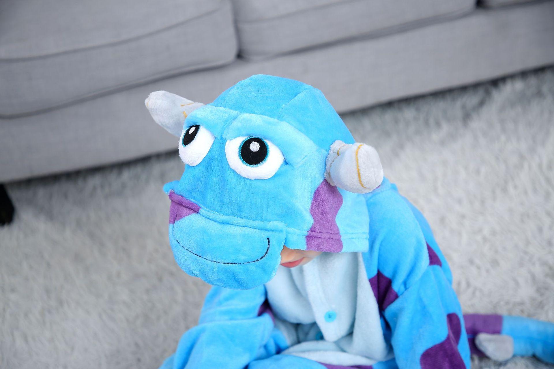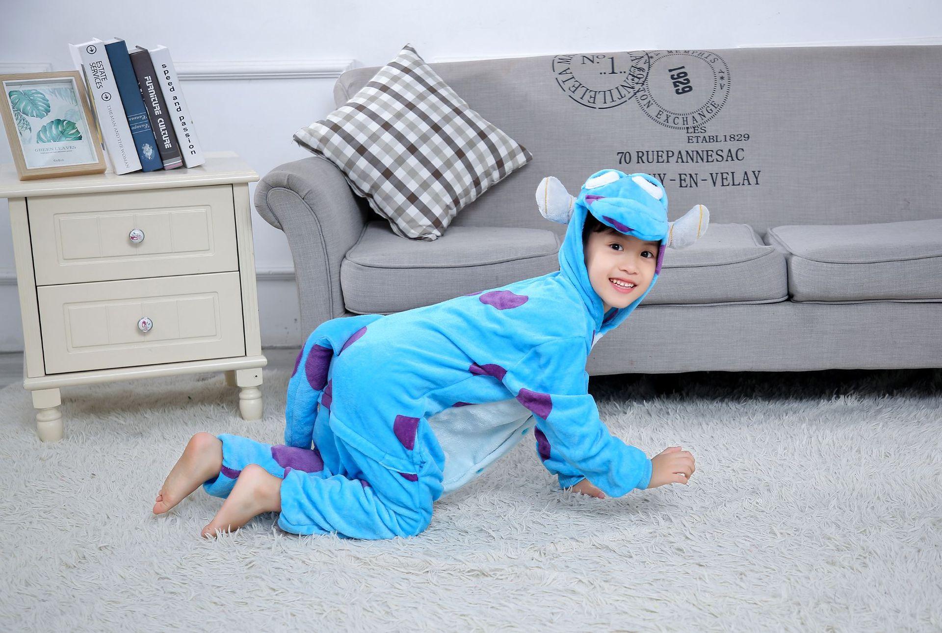 Novos pijamas siameses de desenho animado para crianças, pijamas de flanela azul Sullivan, pijamas casuais para decoração de casa, atacado