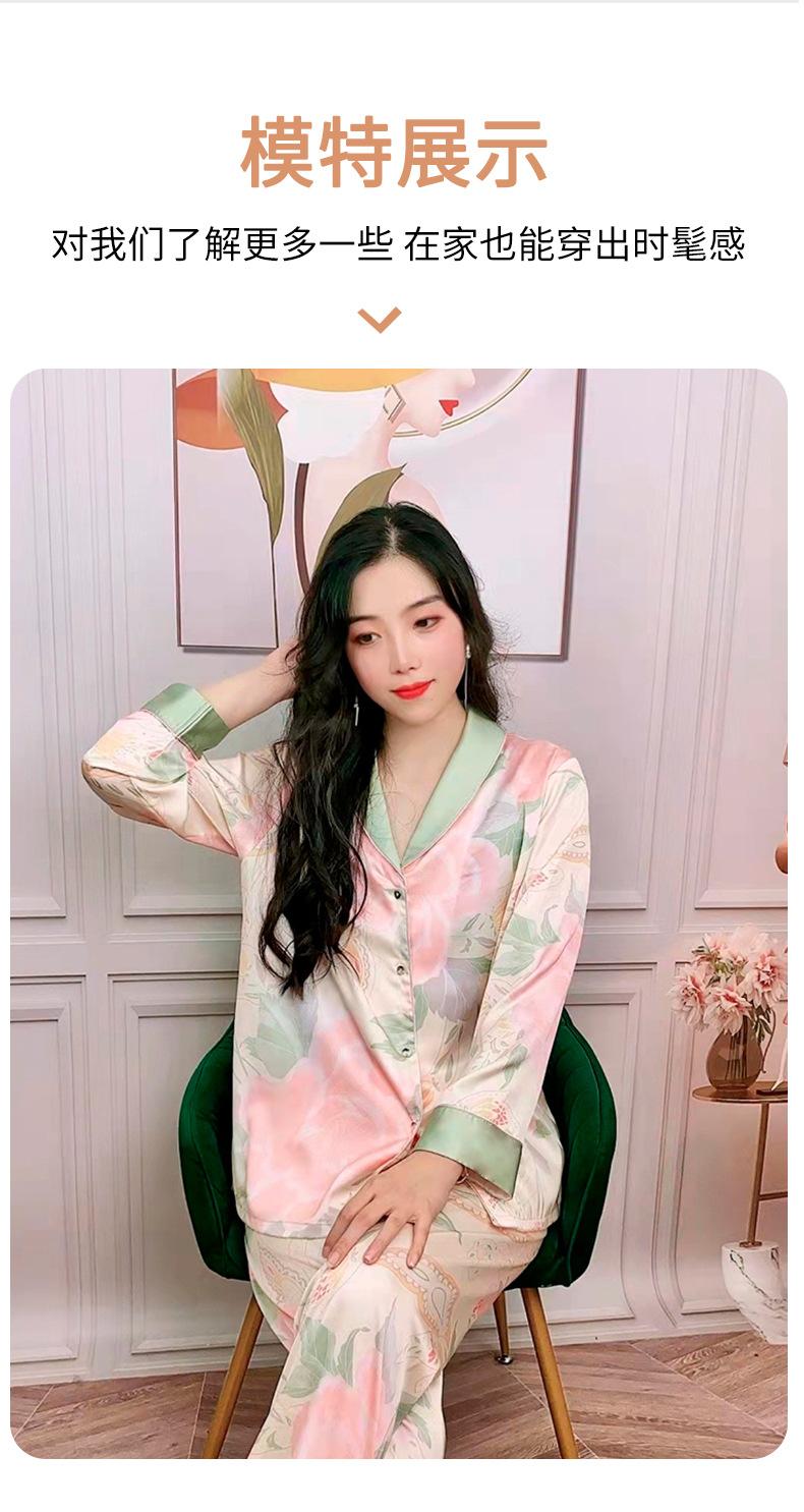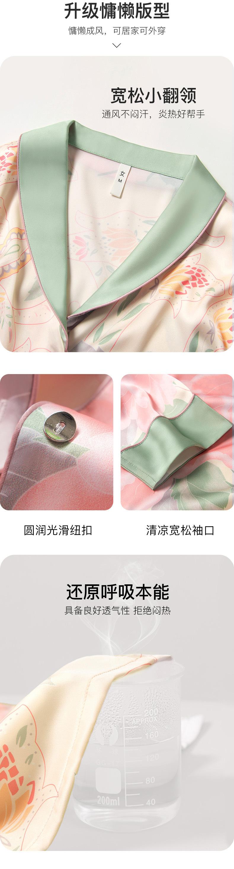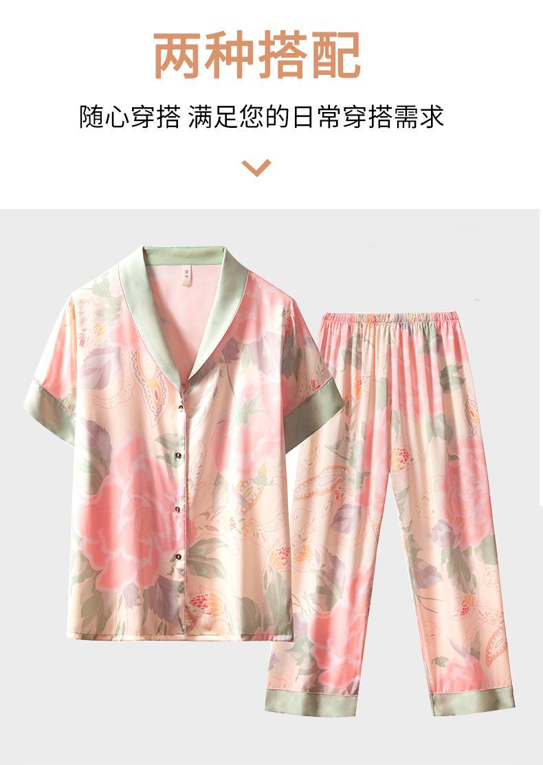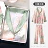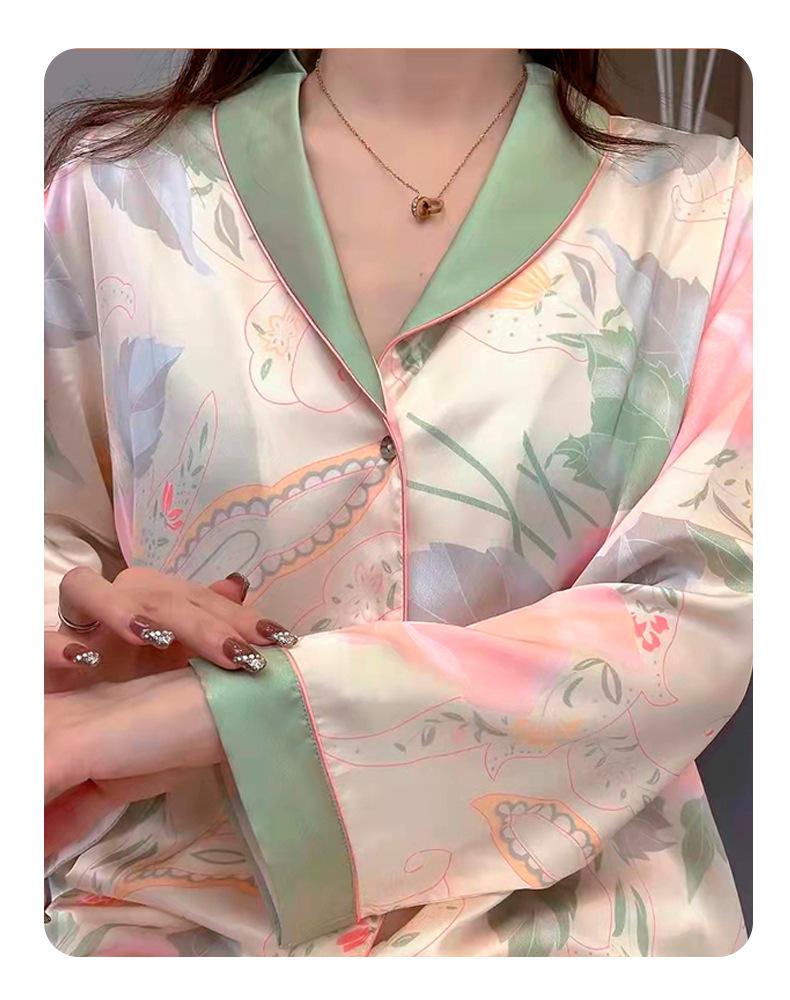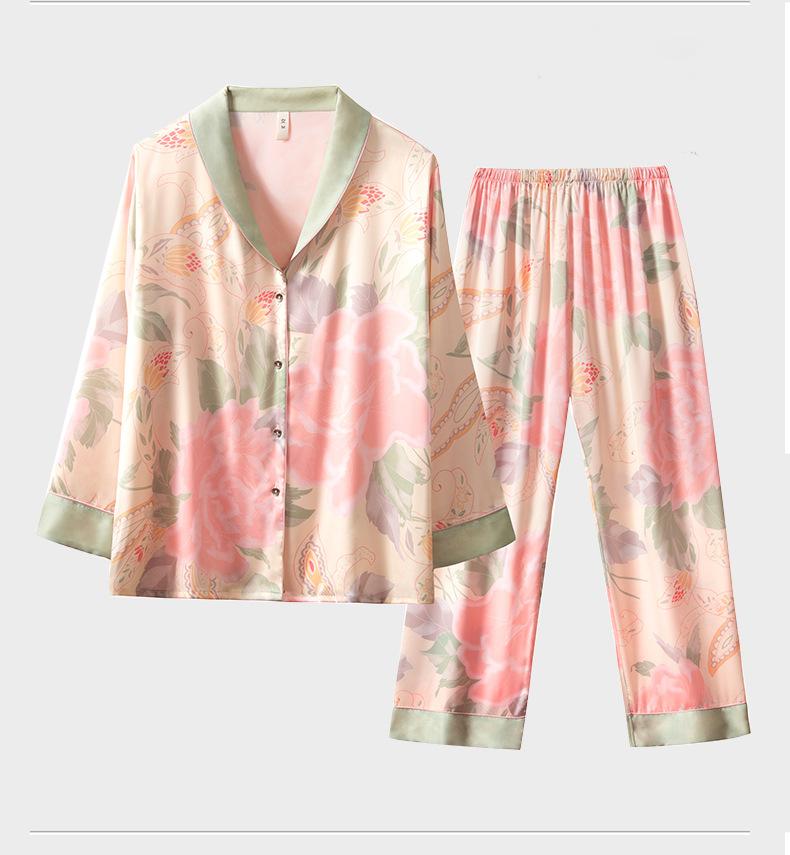Pijama de Seda de Tecido de Seda Gelo Terno de Verão Feminino Fino de Meia-idade Confortável Solto Presente para Mãe Calças de Manga Longa