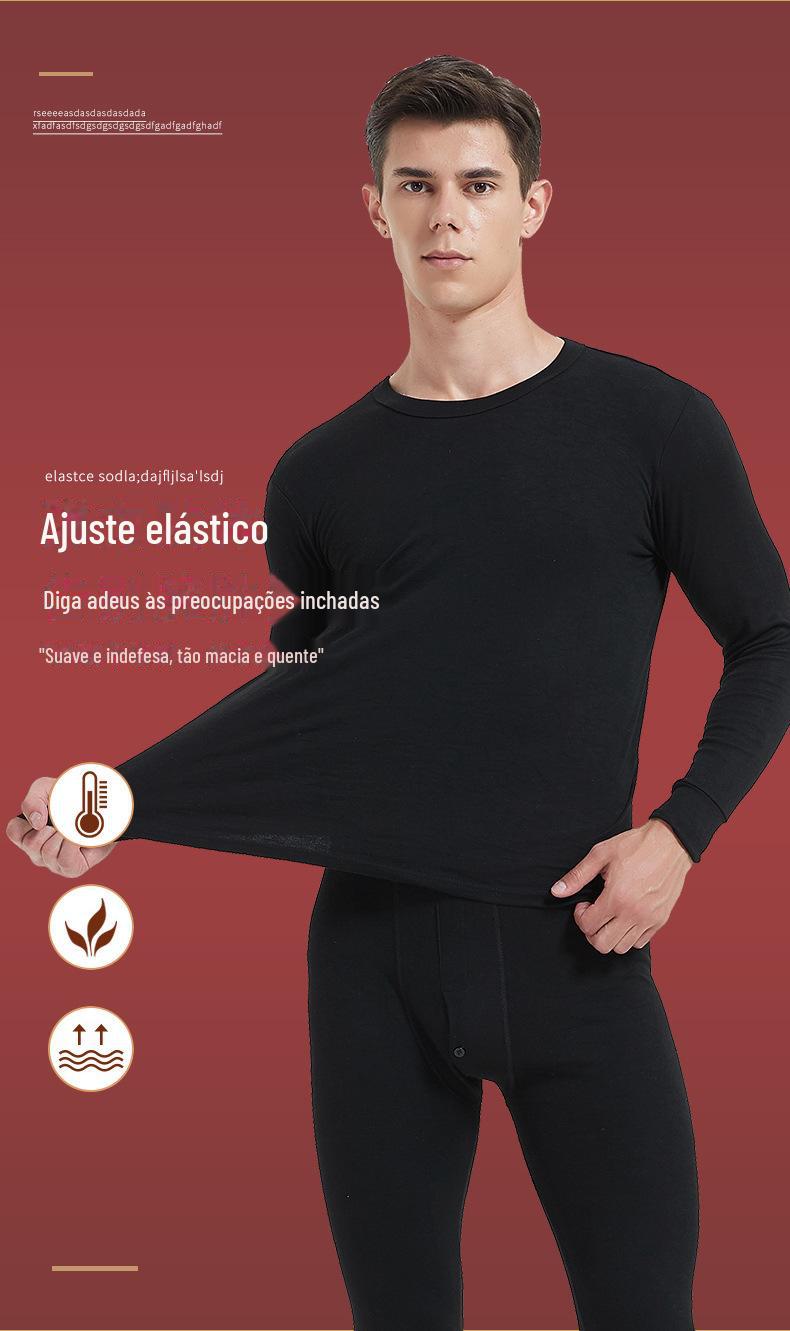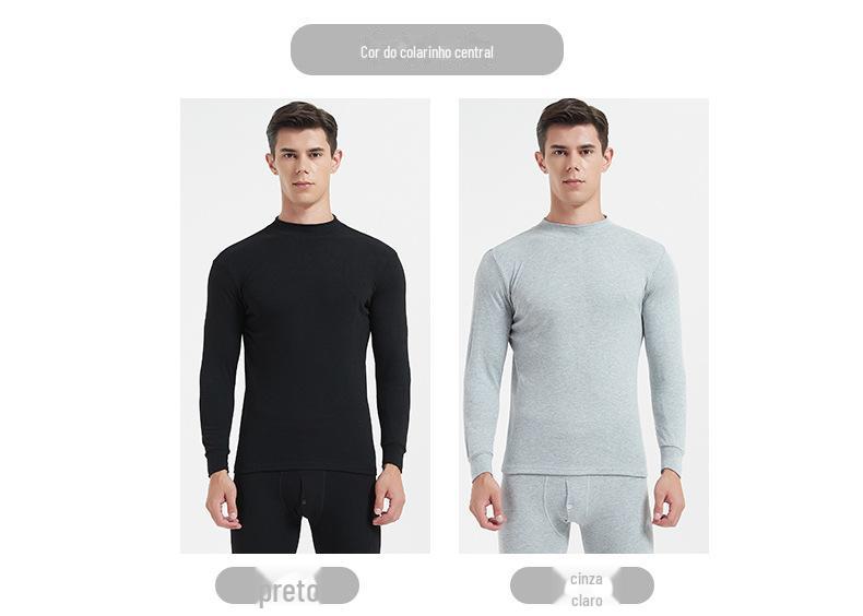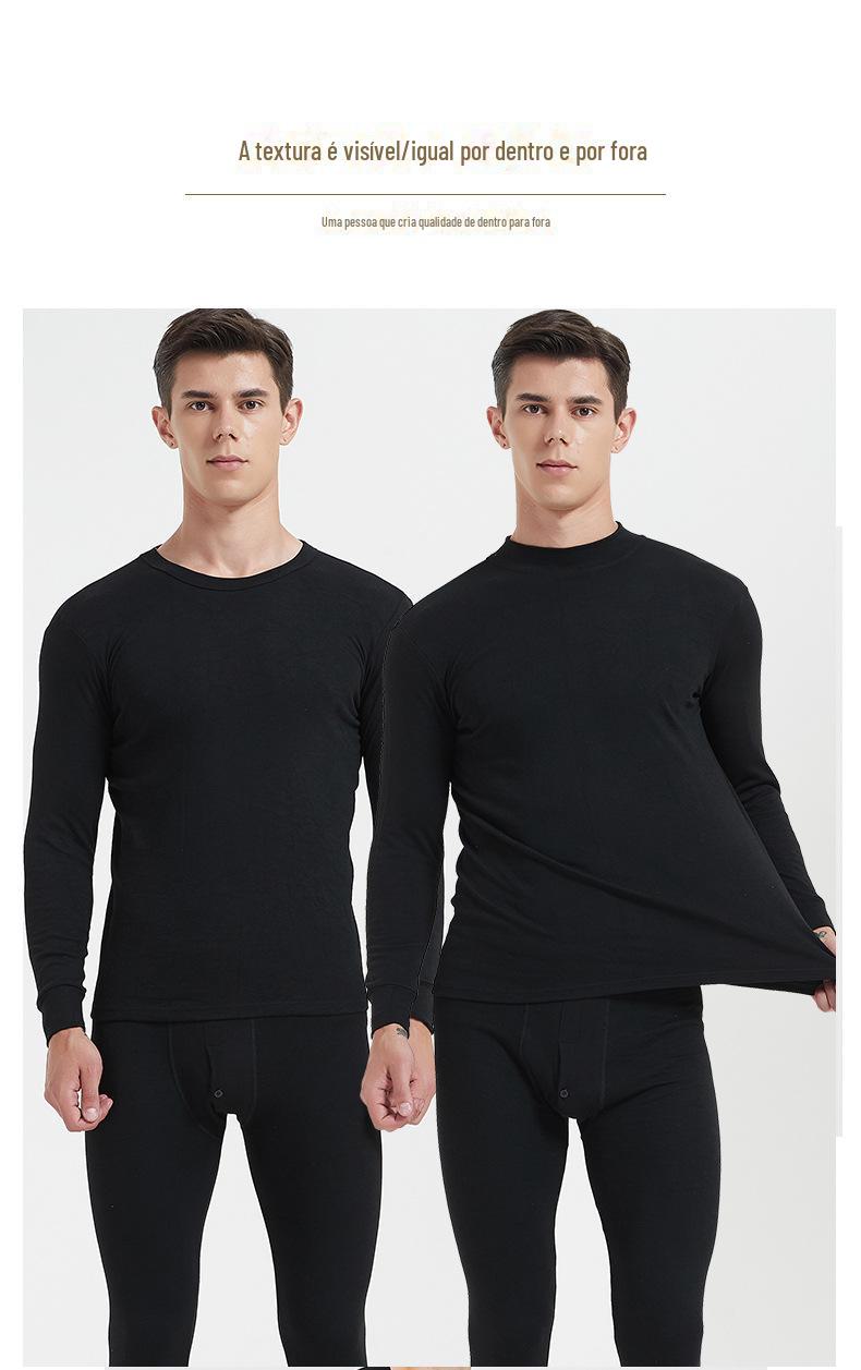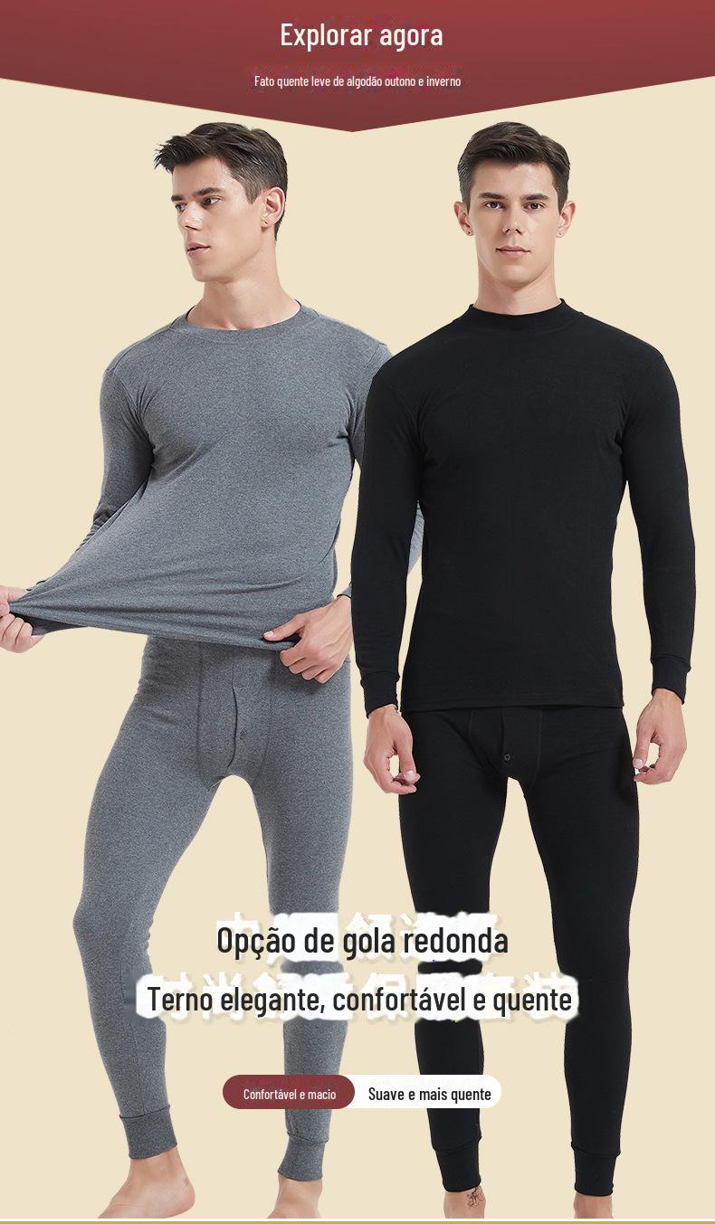 Roupas e calças masculinas de outono terno Gola redonda Roupa interior térmica Algodão de outono Inverno masculino Gola média plus size Base Suéter de algodão