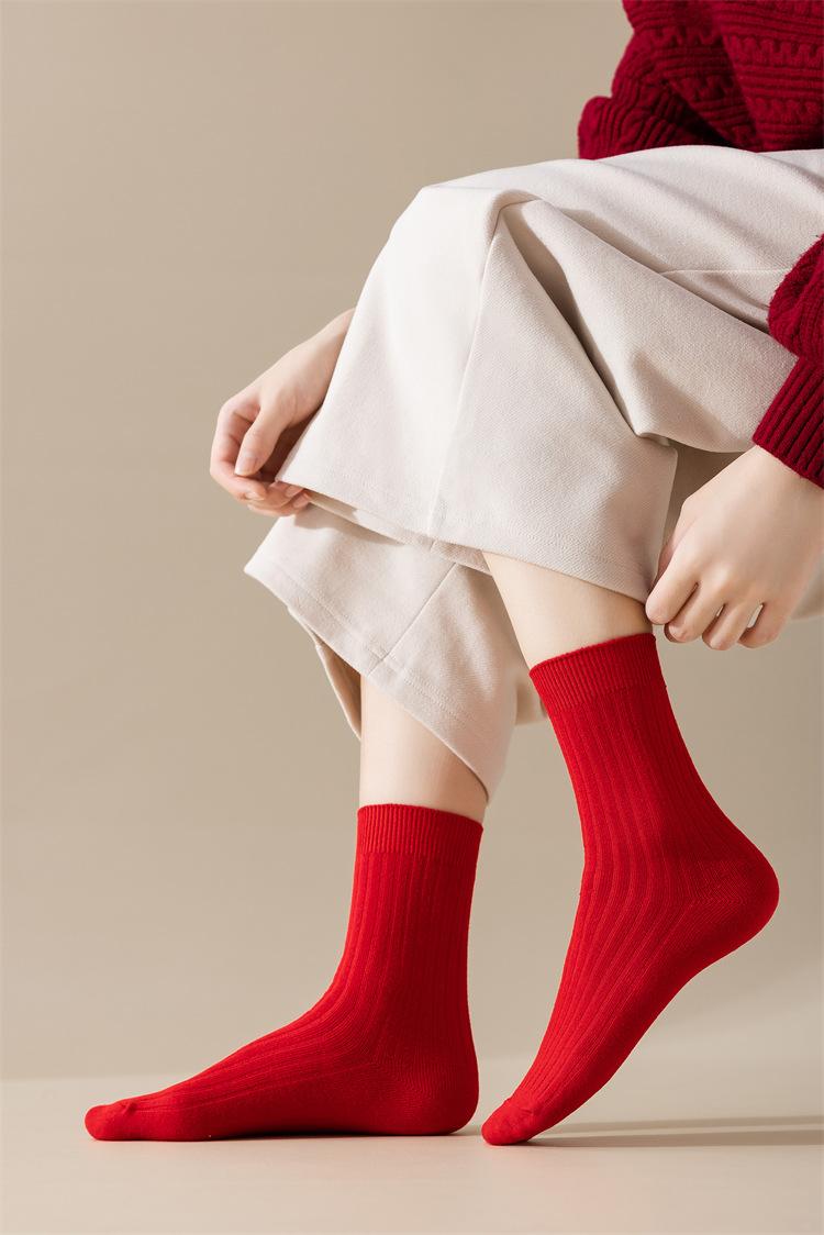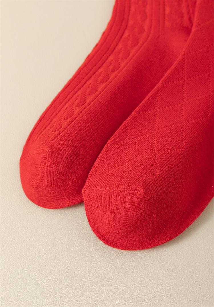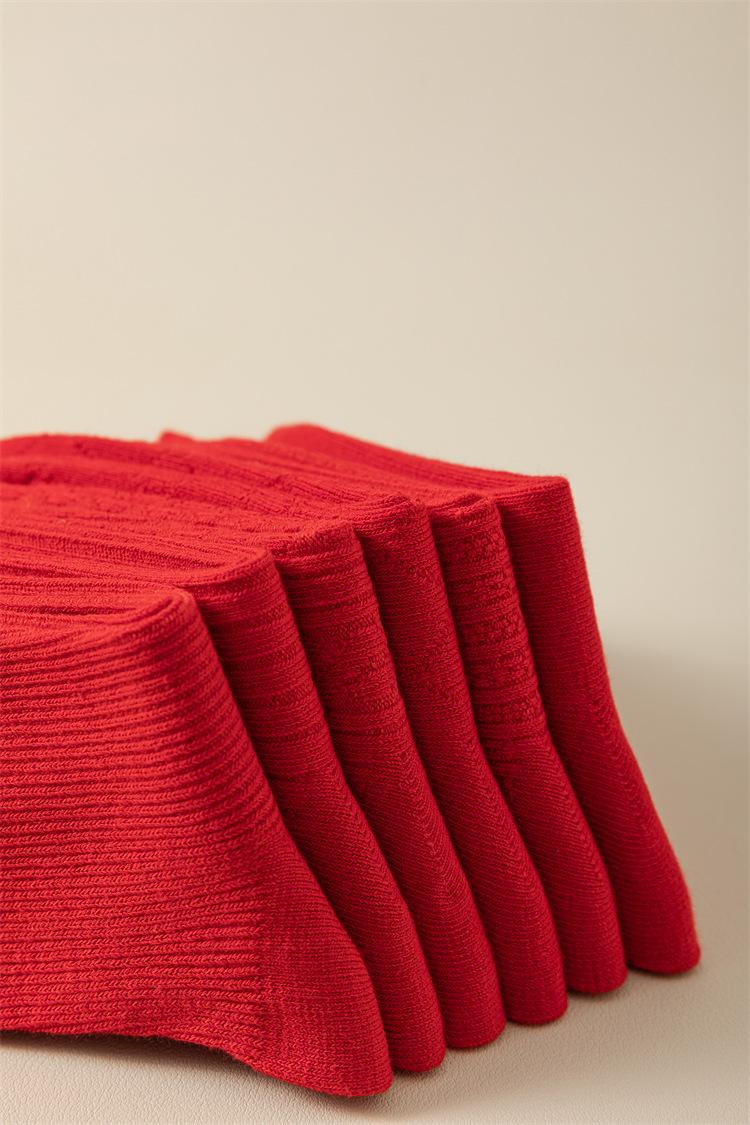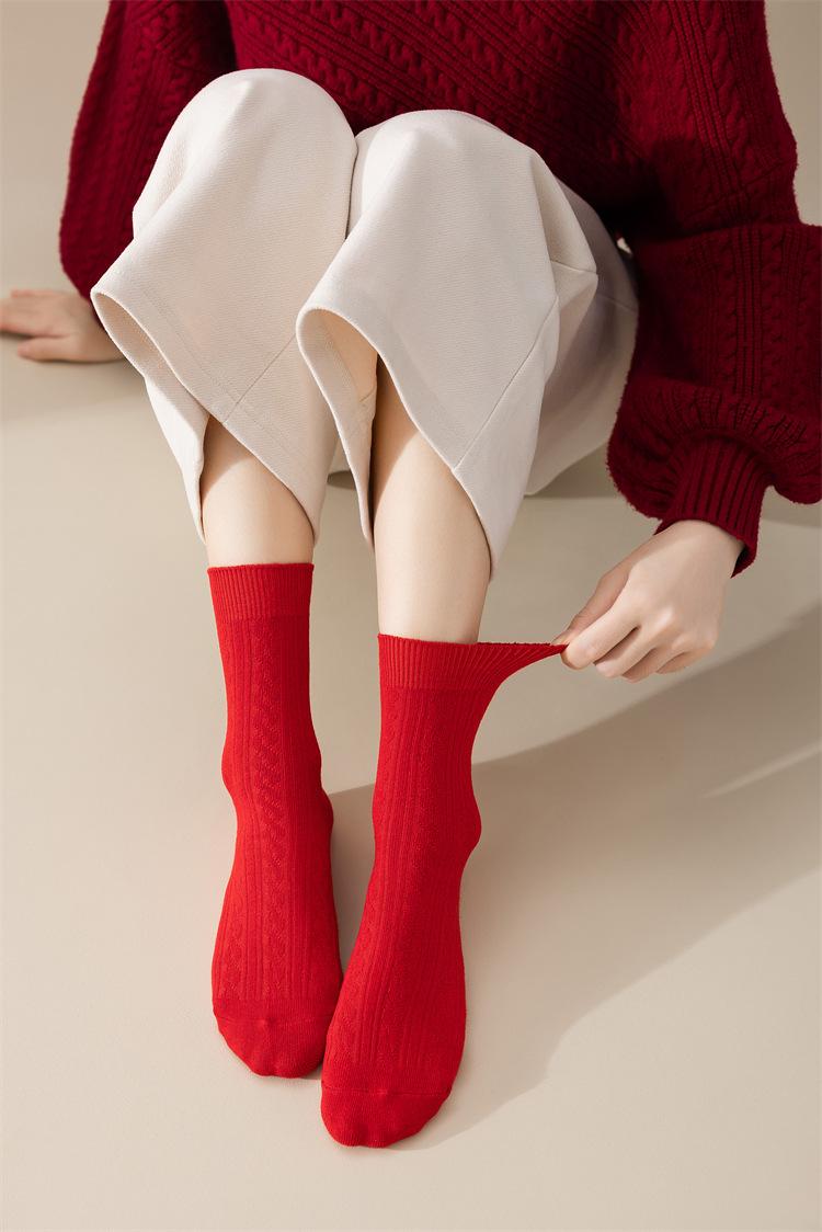 Meias vermelhas de ano novo meias festivas de algodão penteado com agulha dupla ano de nascimento meias da sorte torção japonesa Meias femininas vermelhas de panturrilha